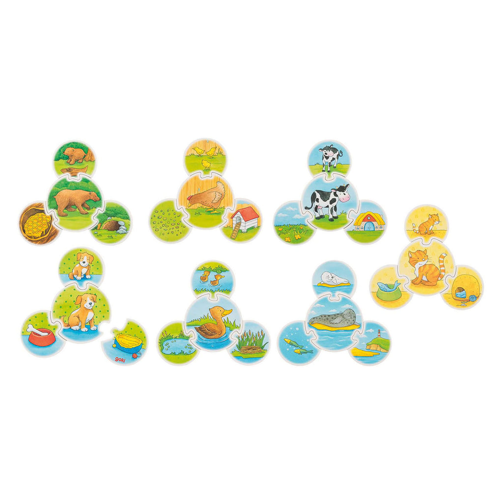 Hoe ziet de nageslacht van dieren eruit? Waar woont het dier? Wat eet het dier? Leren door te spelen en te communiceren met volwassenen kan heel leuk zijn als de stimulans goed is. Kenmerken • Aanbevolen leeftijd: 3+ • Materiaal: hout • Aantal onderdelen: 28 • Afmeting: 18 x 17 cm