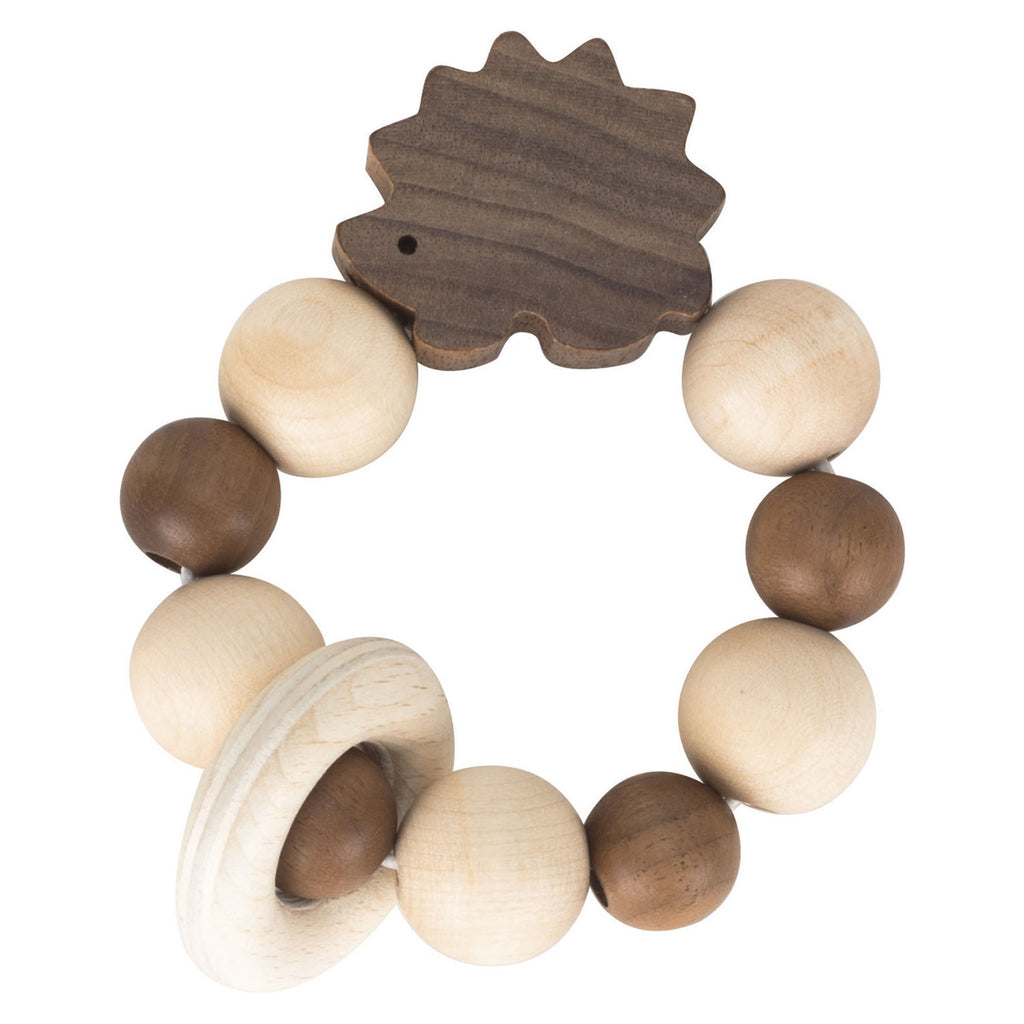 Deze elastische ring met houten kralen helpt je kindje motoriek en reflexen te ontwikkelen. De kralen zijn gemakkelijk vast te pakken en de verschillende oppervlakken, de kralen, de egel en de houten ring leren je kleintje veel over zijn omgeving. Gemaakt van hoogwaardige kwaliteit hout.