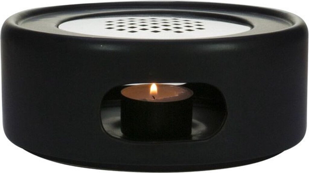 Gusta aardewerk rechaud theelicht fika zwart 17x7 cm