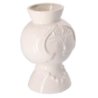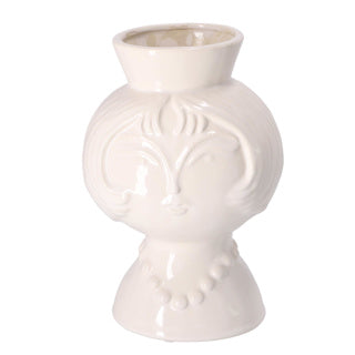 Gusta Vaas met Gezicht Ø16 5 x 23,5 cm. Een vaas met een gezicht. Doorsnede: 16 cm. Formaat 5x23,5 cm. Wit keramiek.