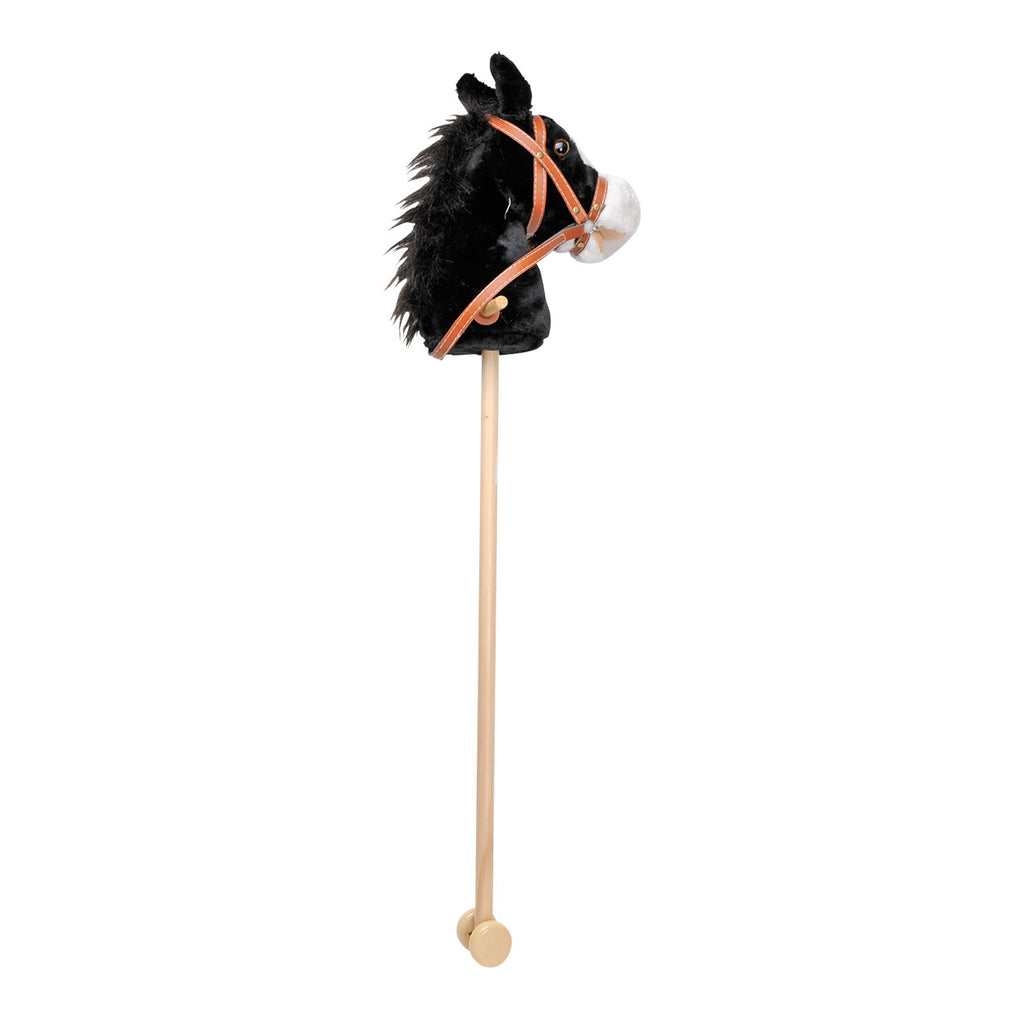 Houten stokpaard met wielen en hoofdstel. Het paard hinnikt als je in zijn oor knijpt. Draaf jij met jouw paard de kamerdeur? Met verwisselbare batterij. Let op: om het geluid van het stokpaard te laten werken dient het strookje plastic bij de batterijen verwijderd te worden. Anders maakt het stokpaard geen geluid.