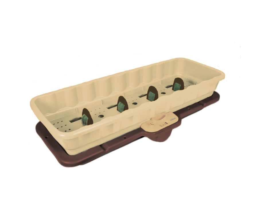 Artikelnummer: 5010646055222 Bekijk alles van Hozelock > Bekijk meer: Moestuin Kweekbakjes > Zelf Bewaterende Kweekbak - Mini Moestuin Met deze kweekbak geef je je planten heel eenvoudig genoeg water. Zo kom je droogte en houd je je planten gezond. Ideaal om groenten of bloemen te kweken. Ook handig wanneer je op vakantie gaat, de bak kan je planten tot wel 14 dagen van water voorzien. De kweekbak heeft een uniek capillair systeem dat ervoor zorgt dat je planten altijd voldoende, maar niet voldoende water krijgen. Het gebruik van de kweekbak minimaliseert waterverspilling. Deze grote kweekbak heeft een inhoud van 30 liter en een waterreservoir van 15 liter. Je vult het reservoir eenvoudigweg met een gieter van tuinslang. Productspecificaties Zelf Bewaterende Kweekbak Artikelomschrijving Zelf Bewaterende Kweekbak Artikelnummer 5010646055222 Afmetingen: 40 x 96,5 x 22,3 cm Inhoud kweekbak: 30 liter Inhoud waterreservoir: 15 liter Kleur: bruin Materiaal: kunststof (70% gerecycled)
