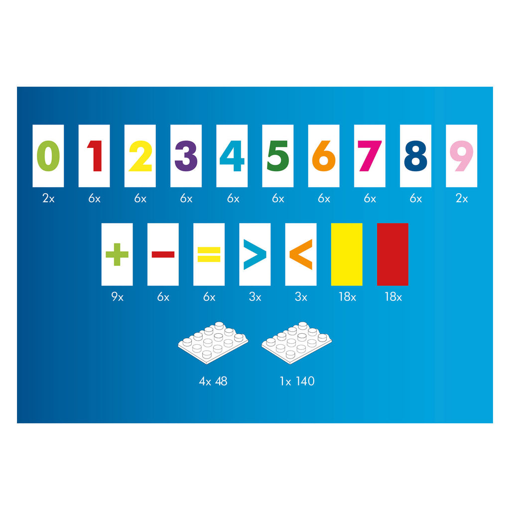 Het fundamenteel van wijsheid bewustzijn vanaf jonge leeftijd voorkomt de afkeer van wiskunde die veel mensen hun hele leven heeft bereikt. Met het leerspel 'Tellen en rekenen' maken kinderen op een goede manier kennis met de wereld van optellen en aftrekken en leren waarin ze hun weg te vinden hebben. Door verschillende getallen heen en weer te tellen, te rangschikken, te verplaatsen, wordt het begrip van getalruimten ontwikkeld en wordt de betekenis van de getallen en overtuigend vastgelegd. Het leerspel 'Tellen en rekenen' wordt geleverd in een hoogwaardige koffer met draagbeugel, zodat je wereld van getallen mee kunt nemen op reis. Kenmerken • Het leerspel 'Tellen en rekenen' is 100% compatibel met populaire bouwstenen van geproduceerd en is gemaakt in Duitsland. • Inhoud: 120 stukjes (115 bouwstenen en 5 grondplaten) + instructieboekje • Geschikt voor kinderen vanaf 6 jaar oud