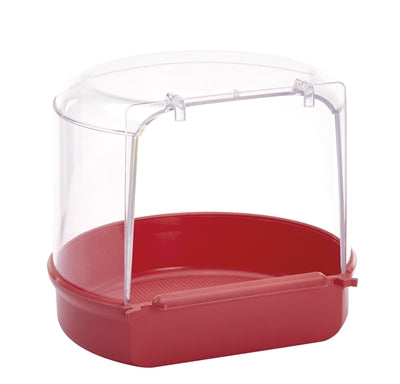 - Voerbakje dat geschikt is voor iedere kooi. De voorkant van het bakje is; deur de ronde vorm; geschikt voor de vogel om op te staan. De onderkant van het bakje is gekleurd en de bovenkant transparant zodat de vogel altijd zichtbaar blijft. Het stevige kunststof is gemakkelijk schoon te maken.