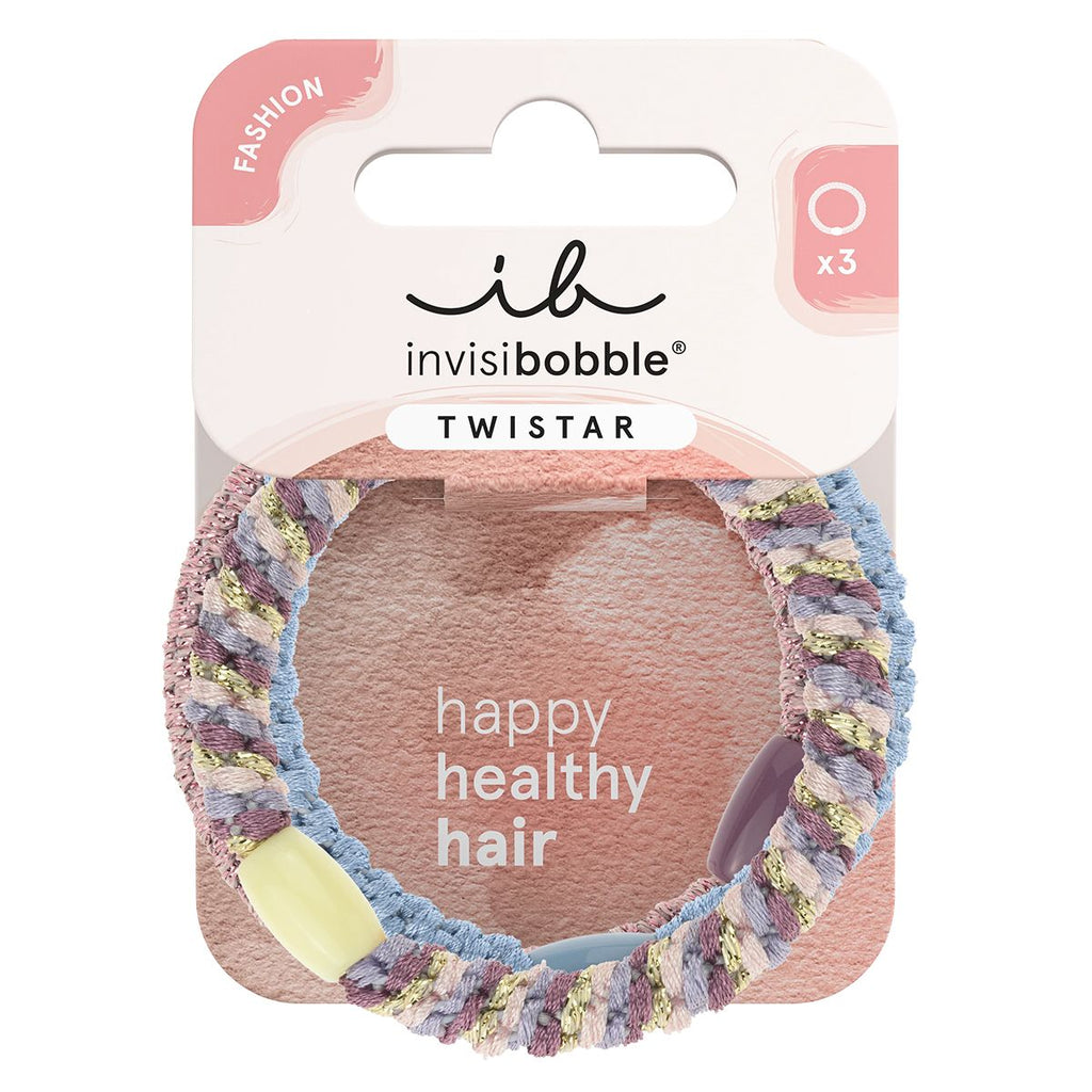 is een set van 3 vrolijke haarelastieken met paarse en mauve tinten. Perfect voor vlechten, knotjes of twists. De haarelastiekjes hebben een naadloos ontwerp voor comfortabele, stevige haarstyles maar dan met een leuke kleur voor bij ieder haartype. Daarnaast staan deze elastiekjes ook nog eens mega leuk om de pols als accessoire. De haarelastieken hebben de beroemde HairLoveTech van Invisibobble en zijn minder schadelijk dan normale haarelastiekjes met metaaldeeltjes. De Twistar is gemaakt van zachte stof die stevig in het haar blijft zitten. Met de producten van Invisibobble kies je voor gelukkig & gezond haar.
