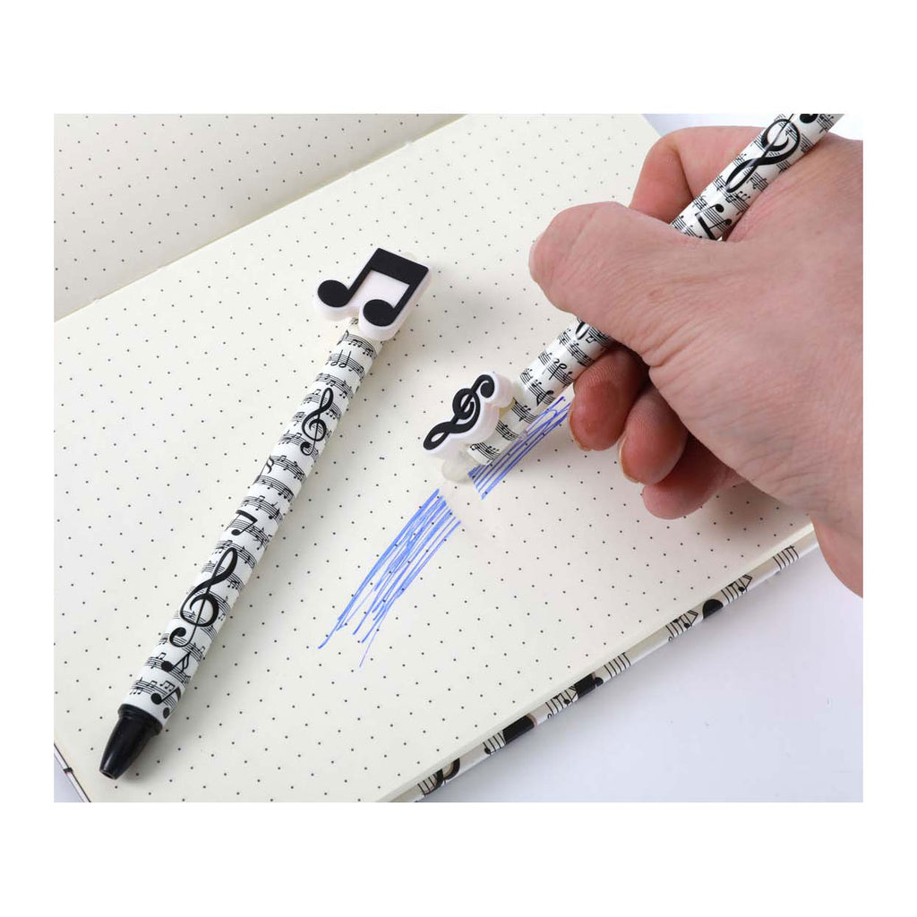 Uitwisbare balpen met muziekprint. Afmeting: 14 cm.