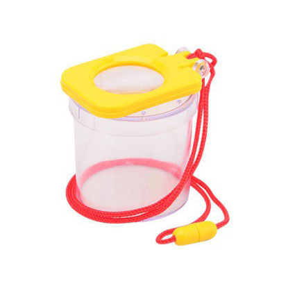Science Explore kunststof insectenpotje met transparante wanden en een vergrootglaasje aan de bovenzijde. Inclusief draagkoord. Afmetingen: ca. 6 centimeter.