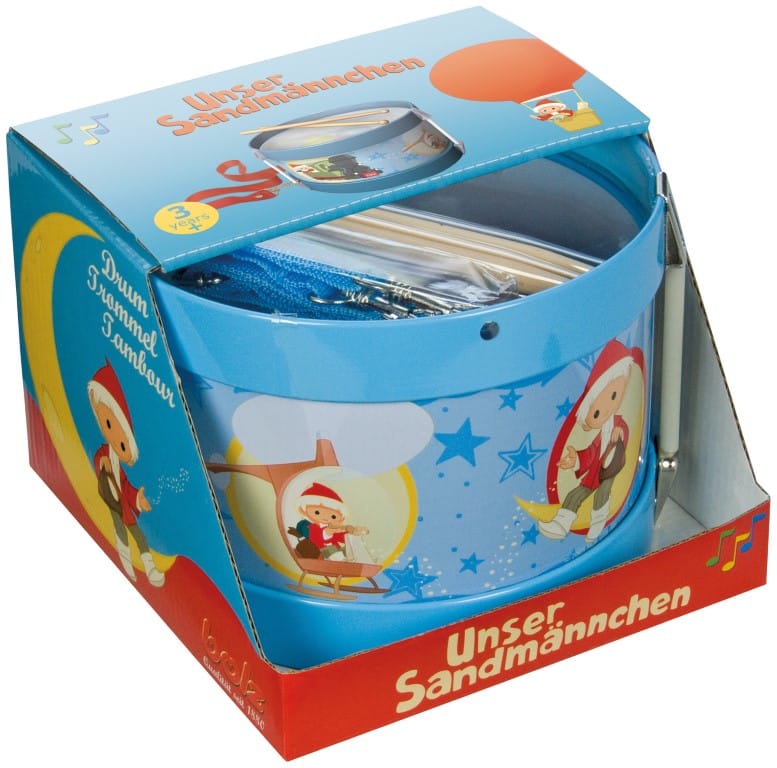 Bolz Trommel van het zandmannetje met koord. De set bevat de trommel, 2 stokken en een sleutelkoord!Ballen in de trommel zorgen voor nog meer speelplezierØ 17 cmVerpakt in een kleurrijke displaydoosKwaliteit van Bolz