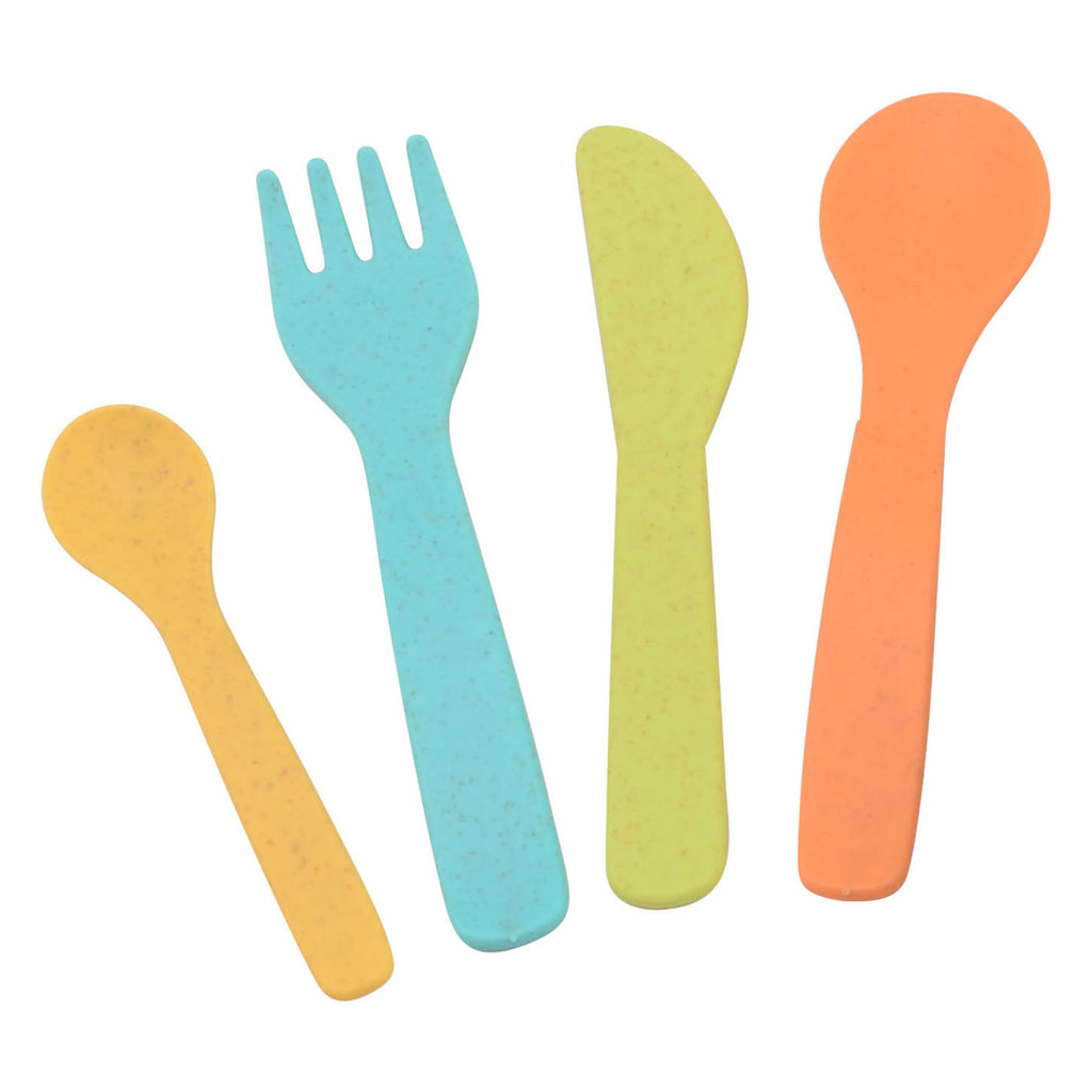 Jouéco kunststof bestekset (17-delig) gemaakt van eco kunststof van tarwevezels. 100% recyclebaar! Inhoud: vorken, messen, lepels en kleine lepels. Geschikt vanaf 24 maanden.