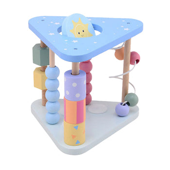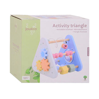 Jouéco activiteitendriehoek van 100% FSC-gecertificeerd hout. Geschikt voor kinderen vanaf 12 maanden oud.