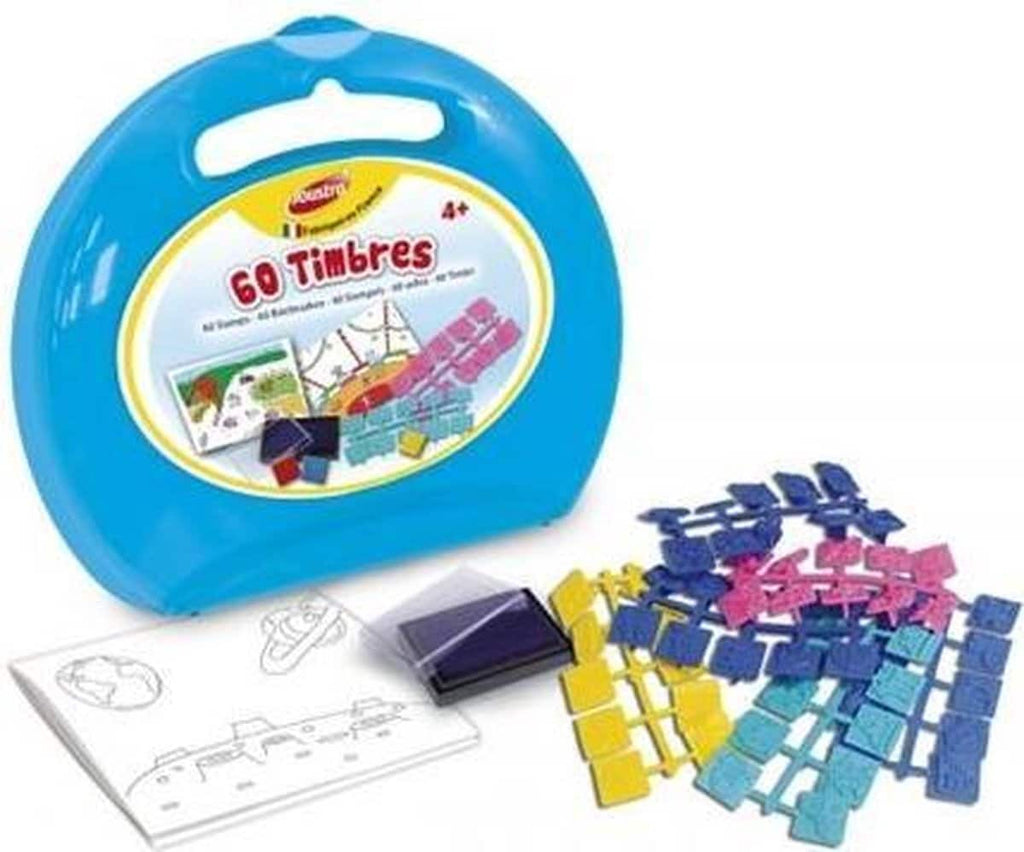 60 stempels in een koffertje. compleet met stempelkussen en papier.
