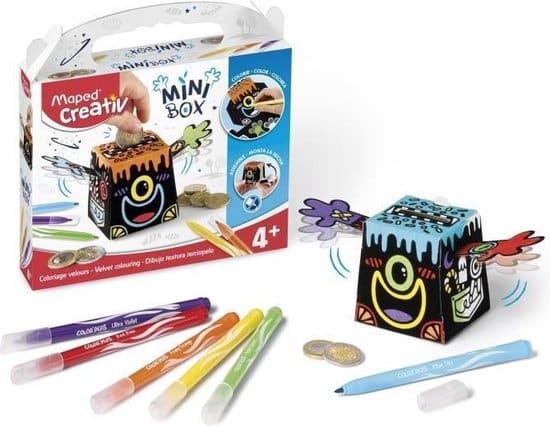 In kaart gebracht creatief Fluweel kleuren en maak een spaarpot. Vouw het doosje in elkaar, kleur hem in en je hebt een spaarpot. Advies leeftijd vanaf 4 jaar.