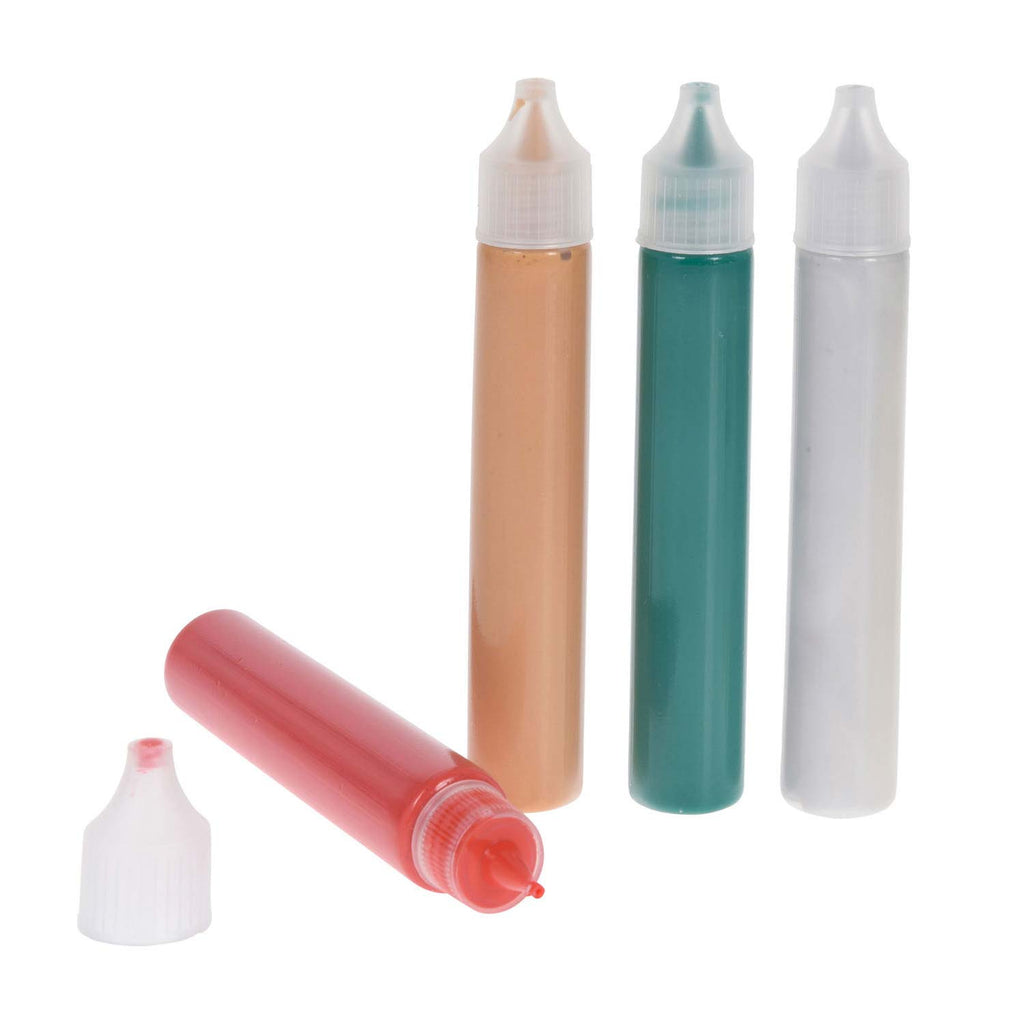 Kaarsen Decoratie Pennen. Deze set bevat vier wax pennen in verschillende kleuren: rood, oranje/bruin, blauw en zilver.
