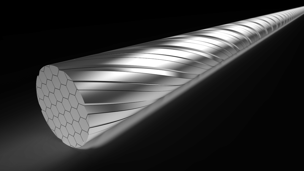 - Binnenkabel: 2.250 mm, voorgerekt (glad) 7x7 draads gevlochten