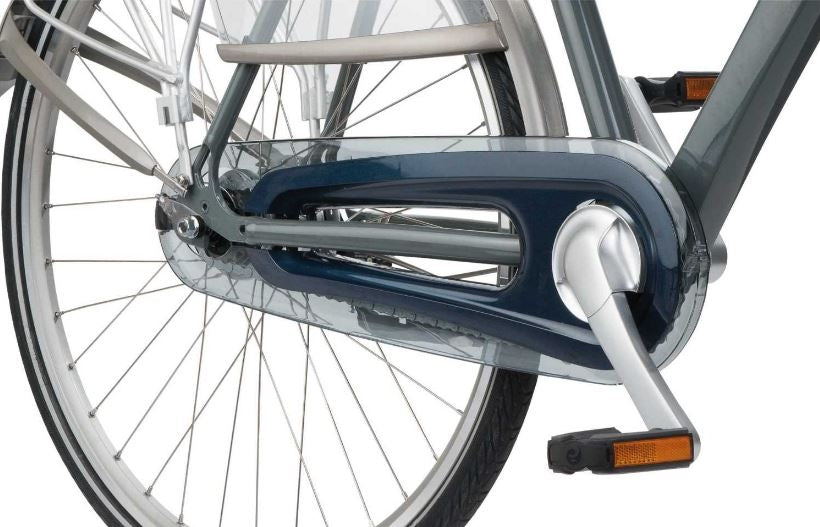 De Axa Kettingkast Multi is een gesloten kettingkast die zeer geschikt is voor stadsfietsen. Met deze kettingkast fietst u veiliger, omdat er geen kleding of vuil vast kan komen te zitten in de ketting, wat eventuele valpartijen kunnen voorkomen. Daarnaast beschermt de kettingkast de kwaliteit van uw ketting optimaal door vocht en vuil geen kans te geven. Hierdoor wordt de consistentie van uw ketting verlengd. De Multi kettingkast is eenvoudig te verdelen met behulp van een schijf en klikbevestiging en de klikbox achter zorgt voor een stevige sluiting. De basiskast is gemaakt van polycarbonaat (licht rook) en de binnenplaat van ABS (zwart). Deze kettingkast is geschikt voor 38 tands tandwielen. Productspecificaties: - Kleur: Transparant/Zwart - Geschikt voor 38 tanden - Materiaal: Kunststof - Lengte: 63,5 cm - Hoogte: 20 cm - Diameter crankgat: 39 mm - Gewicht: 470 gram