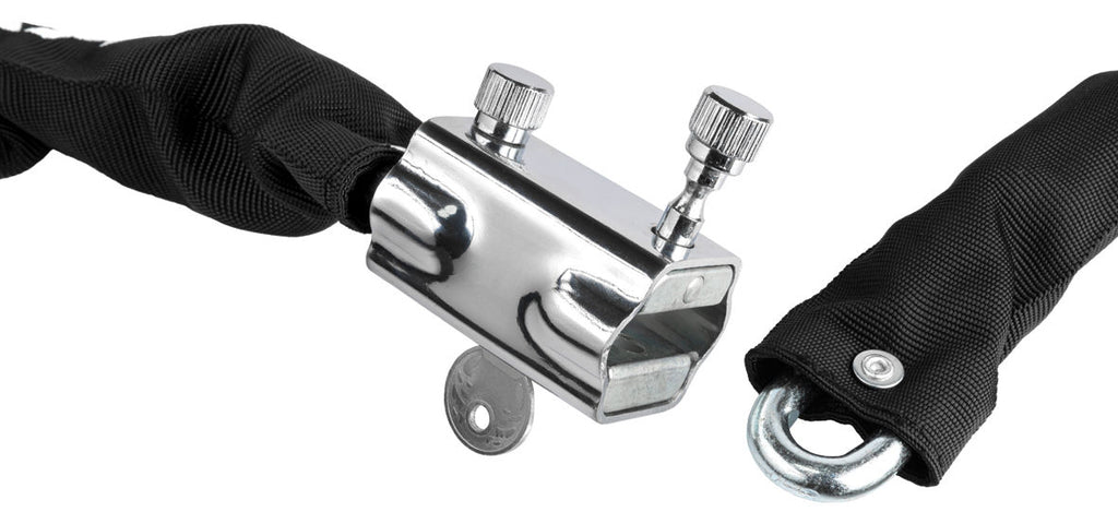 "De AXA Hawk is een gegarandeerde ketting die perfect is voor het kort tot middellang parkeren van uw fiets of als tweede slot. Het kettingslot is gemaakt van gehard staal en biedt een uitstekende knipkracht. Met een lengte van 100 cm en een schakeldiameter van 8 mm is deze ketting geschikt voor verschillende fietsen. De zwarte mouw zorgt ervoor dat uw fiets beschermd is tegen krassen. Met de bijgeleverde sleutels kunt u het slot gemakkelijk openen en de ketting beheren. Met de AXA Hawk kunt u met een veilig hart uw fiets schrijven." Productspecificaties