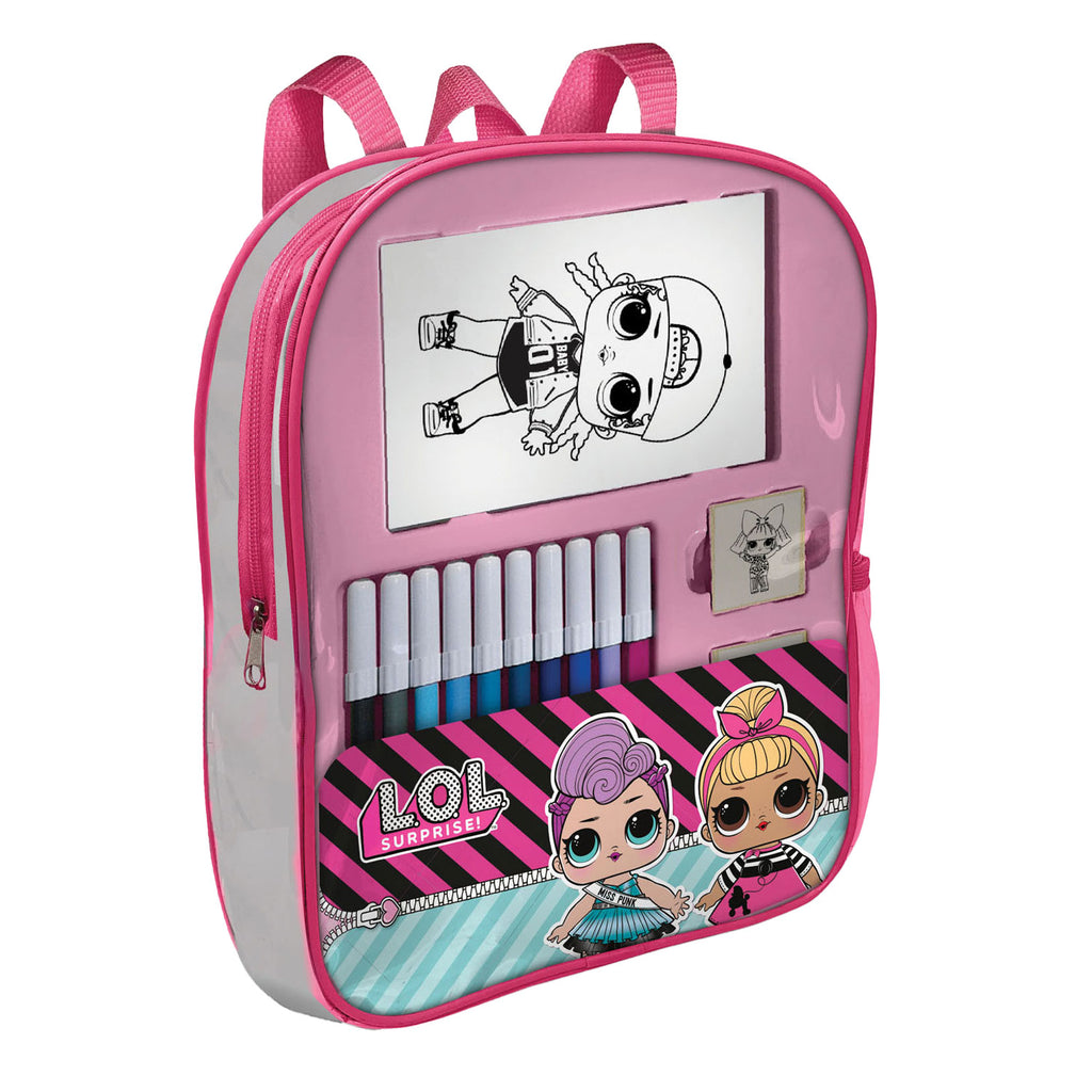 Maak je klaar voor een reis vol kleur en plezier met de LOL Stempelkit Rugzak! Deze set is gemaakt van de beste materialen en bevat 10 handtekeningstiften, 4 stempels, 1 activiteitenboek, 1 inktpad en 30 stickers. Inclusief transparante rugzak. Afmetingen: 23 x 30 x 7 centimeter. Geschikt voor kinderen vanaf 3 jaar oud.