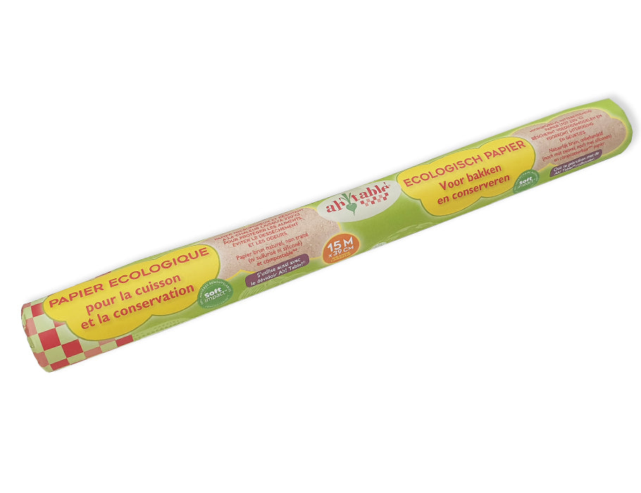 Artikelnummer: 3760138834805 Bekijk alles van Ah! Tafel! > Bekijk meer: Bakbenodigdheden > Ah! Tafel! Bakpapier (navulling) - 15 meter Bakpapier biedt veel mogelijkheden! Dit bruin keukenpapier met vlak en blij oppervlak is voornamelijk gemaakt voor in de oven om te bakken (tot 220°C) en in de magnetron. Dankzij zijn microporeuze structuur ademt het, absorbeert de condensatie, beschermt het de aroma's, blokkeert het de vetten en is het volledig neutraal wat betreft smaken en geuren van voedsel. In de ijskast kan dit papier evenzeer gebruikt worden om voedsel te bewaren (charcuterie, kaas, etc). Zo kunt u uitdroging van uw voeding en verspreiding van geurtjes voorkomen. De vele voordelen zorgen voor veelzijdige, gevarieerde gebruiksmogelijkheden... Dit ecologisch papier zal u helpen in de keuken en bij het bewaren van uw voeding! Productspecificaties Bakpapier - 15m - navulling Artikelomschrijving Bakpapier - 15m - navulling Artikelnummer 3760138834805 Land van herkomst Frankrijk Afmetingen : 15 meter x 39 cm De rol kan los gebruikt worden maar verleden ook in de dispencer van La droguerie Ecologique