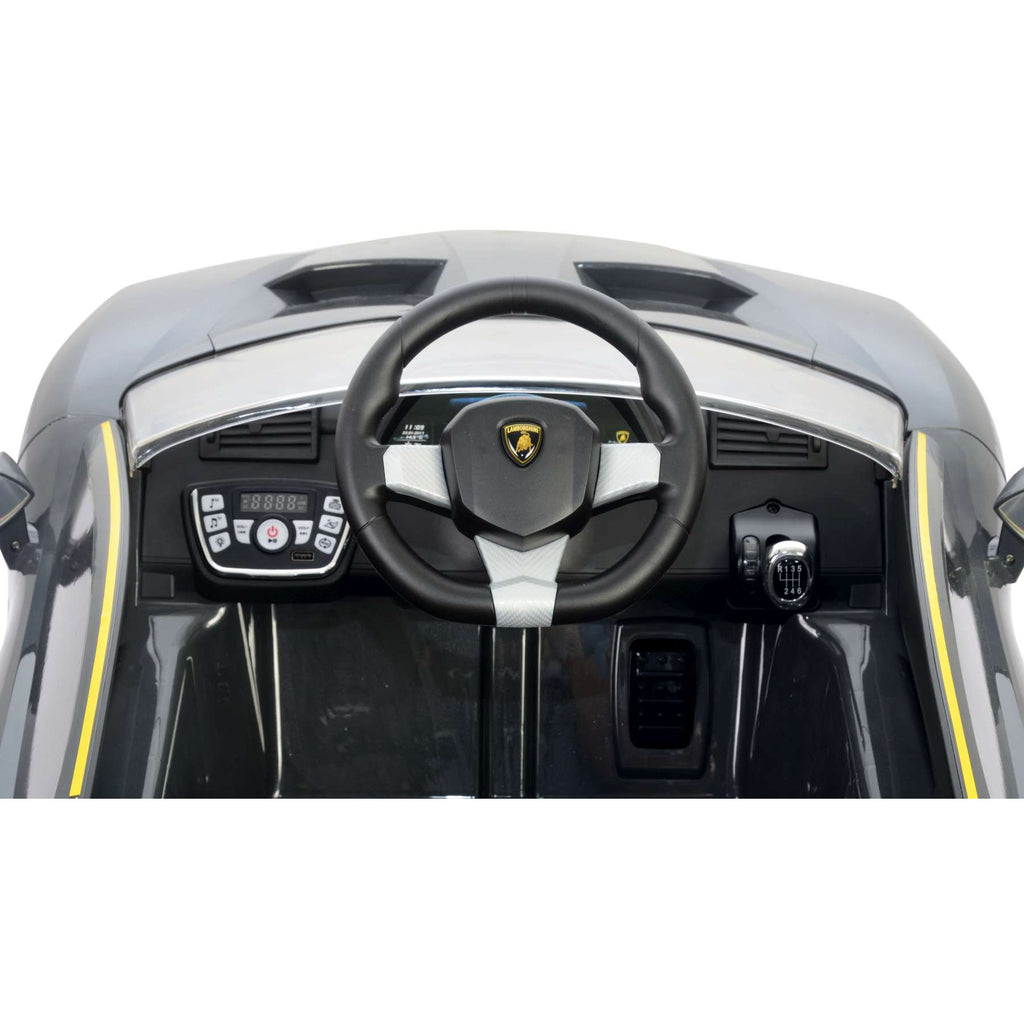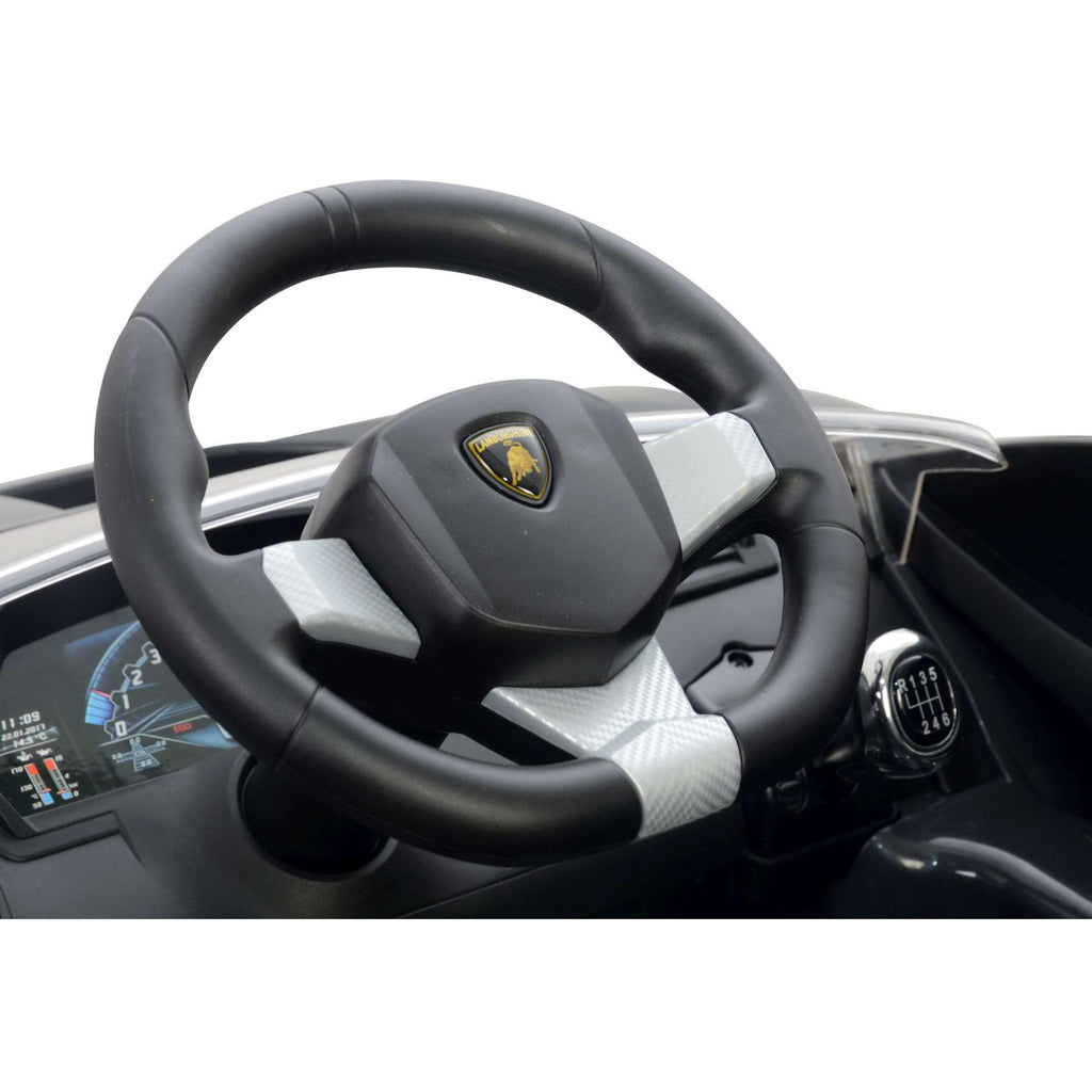 De auto heeft een zeer groot dashboard met veel verschillende functies. Zo kan het motorgeluiden produceren, heeft het een toeter, is er een USB- en MP3-aansluiting en kunnen de lampen worden aangezet. De Lamborghini heeft 3 versnellingen en kan omgekeerd vooruit rijden met 2,5, 3,4 en 4,2 kilometer per uur en kan ook achteruit rijden. Daarnaast kan de auto ook bestuurd worden vanaf buiten de auto, namelijk met de afstandsbediening. De afstandsbediening heeft een bereik van 2,4 Ghz waardoor de auto tot op 25 tot 30 meter afstand te besturen is. Hierdoor kunt u uw soort rustig laten wennen aan de auto voordat hij/zij het gaspedaal in kan trappen en zelf kan sturen!