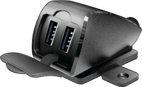 waterdichte dubbele USB-lader met smart-chip die het aangesloten apparaat herkent en de juiste energie levert voor een veilige en snelle laadbeurt. Bescherming tegen kortsluiting, overtemperatuur, overbelasting, overstroom. IP68 waterdichte deur, ultrasone afdichting en waterdichte membranen op de ingangen. Ultra Fast Charge - 5400 mA - ingang 12/24V (30W) Schroeven of 3M plakbevestiging (inbegrepen). Bedraad met hardware vorkklemmen (draad 150 cm)