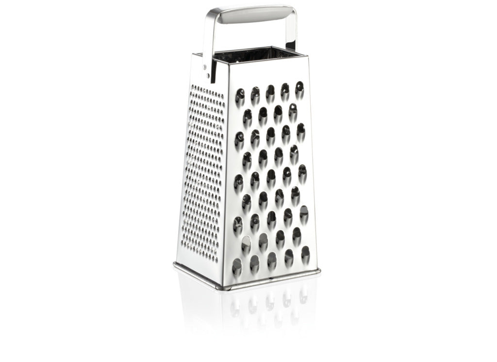 Grof of fijn geraspt, in zelfs grote oppervlakken gesneden of fijn geschaafd, de 4 raspvlakken kunnen alles aan, komkommers, aardappelen, kaas en alle soorten groente. De ideale allround rasp voor een gevarieerde portie rauwkost. Kunststof handgreep voor een prettige grip. Schoonmaken kan gewoon in de vaatwasser.