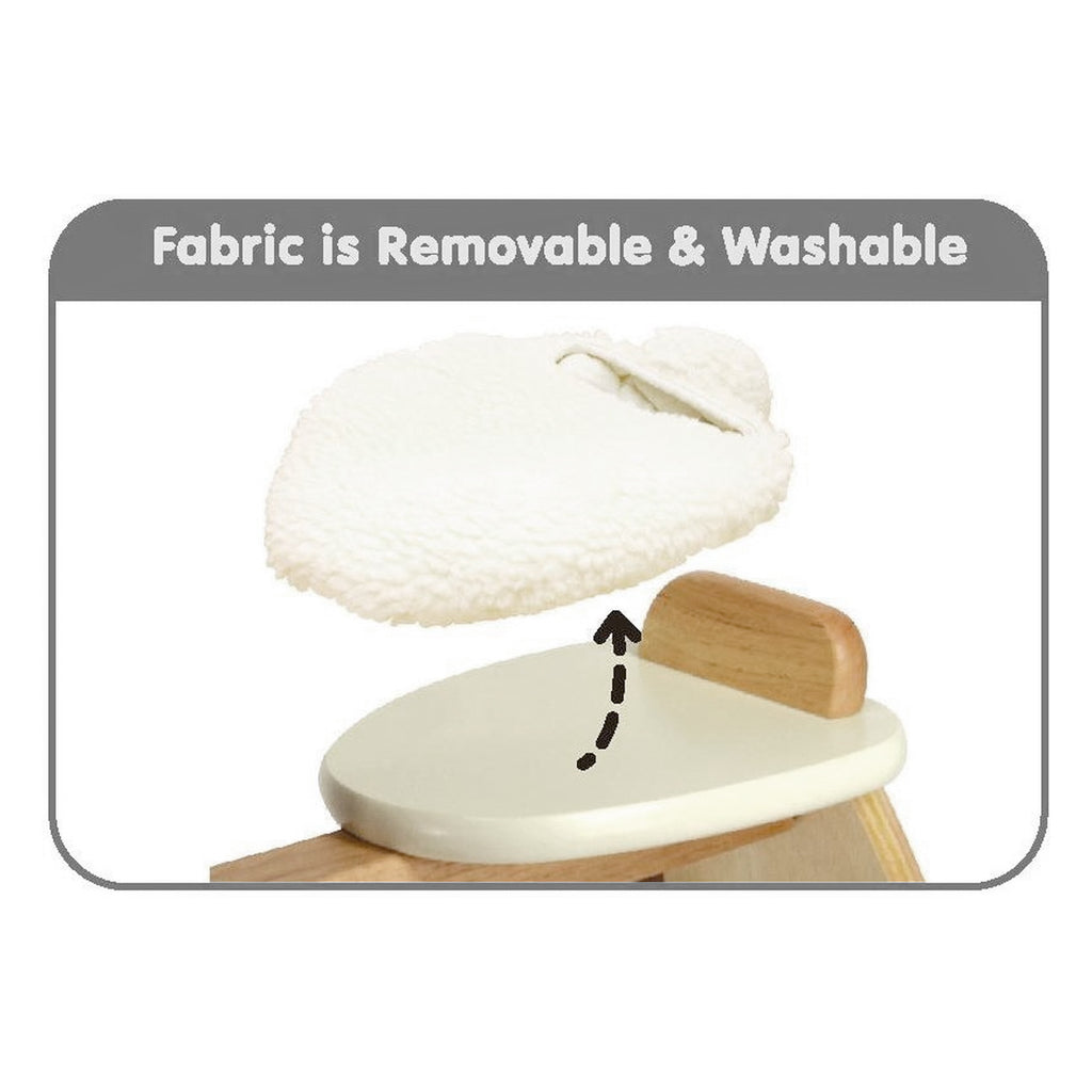 Met de leert een soort stapsgewijs haar evenwicht te bewaren, spieren te trainen en snelle loopbewegingen te maken. Ook ontwikkel je alvast het 'fietsgevoel'. De I'm Toy loopfiets is gemaakt van duurzaam rubberhout, heeft de vorm van een schaap en leuke details zoals stoffen oortjes en een pluchen zitkussen. Het zitkussen is afneembaar en kan worden gewassen op 30℃. De loopfiets is voorzien van rubberen banden die geen krassen op de vloer achterlaten.