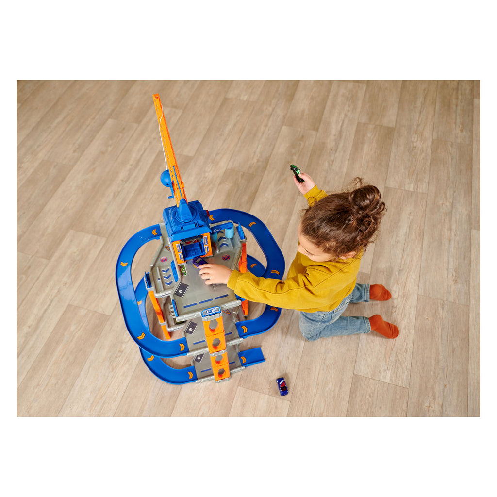 Eet 5 verschillende niveaus, deze grote parkeergarage is het perfecte speelgoed voor jonge bouwwerken. De garage van 53 x 56 x 73 cm heeft een motor afgesloten lift (batterijen niet opgenomen), een benzinestation, een 360 ° kraan met een sloepbal, een carwash, een liftplatform en spannende hellingen voor snelle actie. Het bevat ook 5 metalen speelgoedauto's - een Lamborghini Aventador, Audi R8 Spyder, Jeep Wrangler, Ford GT en een Renault Twingo, die allemaal roterende wielen, ophanging en een metalen chassis hebben. Ontworpen voor kinderen van 5 jaar en ouder, hebben de garage en auto's een zeer duurzaam ontwerp en maken ze een ideaal cadeau voor jonge krachten. - Parkeergarage op 5 niveaus - benzinestation, garage, carwash - Toren met 360 ° roterende kraanarm en een sloepbal - gemotoriseerde lift (batterijen niet inbegrepen) - Inclusief 5 metalenauto's met rollende wielen - Modellen: Renault Twingo, Lamborghini Aventador, Audi R8 Spyder, Ford GT en Jeep Wrangler - Lange capaciteit dankzij premium metalen chassis - Materiaal: metaal/plastic - Afmetingen: 53 x 56 x 75 cm - Aanbevolen leeftijd: 5+ jaar