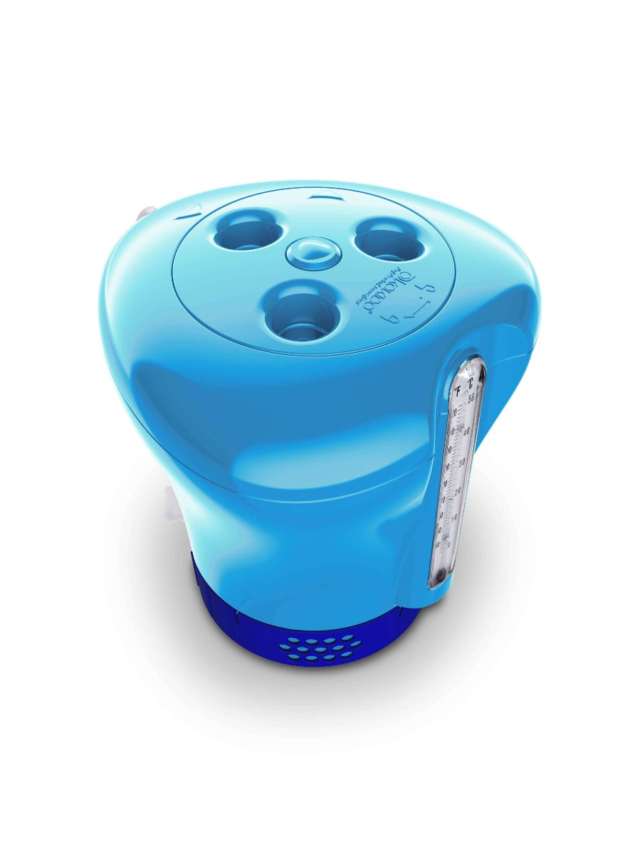 Chloordrijver voor chloortabletten, voorzien van een thermometer en een hervul-indicator. Geschikt voor Ø 75 mm chloortabletten, voor maximaal 5 tabletten. De dosering van het chloor is handmatig in te stellen, zodra de chloordrijver leeg springt de hervul-indicator omhoog.