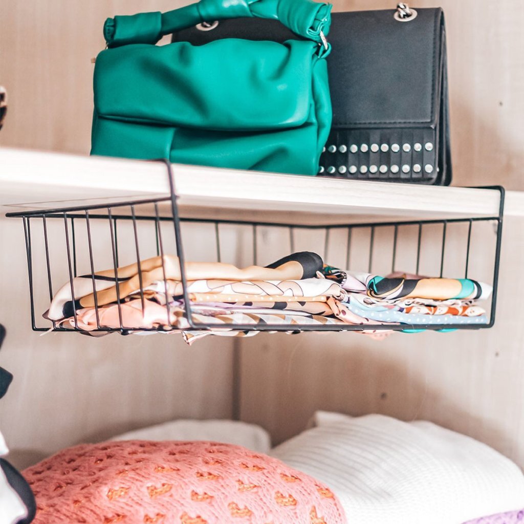 Met deze praktische en handige zwarte hangmand beschik je direct over flink wat extra opbergruimte onder bijvoorbeeld een kastplank. De mand dient met zijn twee beugels over de plank heen geschoven te worden. De totale hoogte van de hangende draadmand (inclusief de beugel) is 14 cm. De hangmandjes van metaal zijn geschikt voor een plank met een maximale dikte van 3 cm. Ruimte creëren met hangmanden Met deze hangmanden kun je veel ruimte besparen in je keuken. Leg boterhamzakjes of bijvoorbeeld theezakjes in de hangmand en je eindeloze meer ruimte in je keukenkast voor de grote spullen zoals borden. De Metaltex hangmand is stevig en heeft 3 jaar fabrieksgarantie.