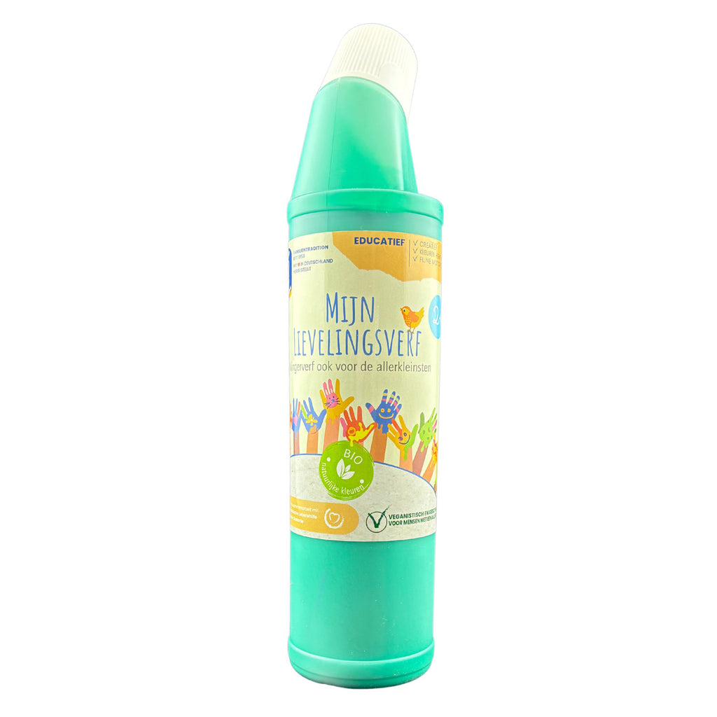 Fles groene vingerverf uit de serie Mijn Lievelingsverf van Feuchtmann.
