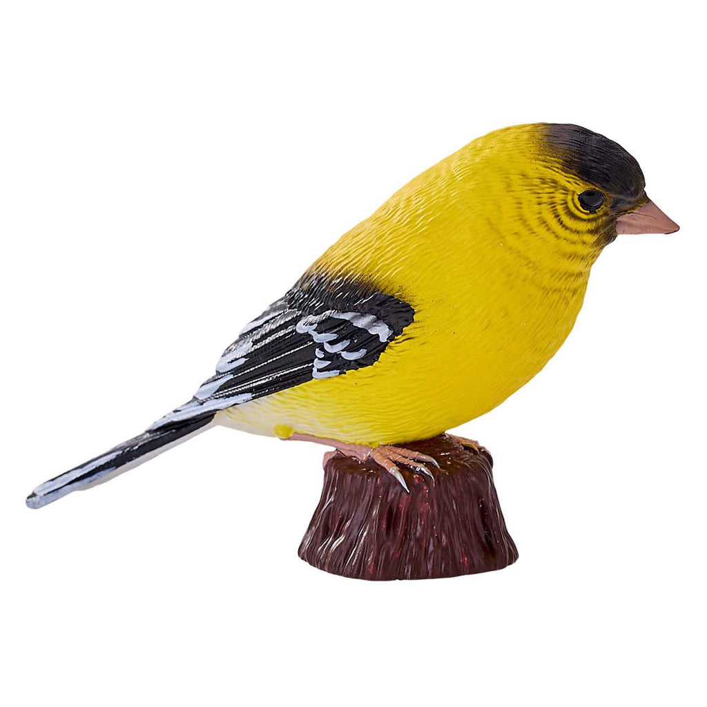 Mojo Amerikaanse Putter/Amerikaanse Goudvink. De Amerikaanse Putter is 7,3 x 2,5 x 5 cm groot.
