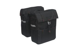 De Vigo Double is een sportieve dubbele fietstas gemaakt van waterafstotend polyester. Met een moderne haaksluiting is deze eenvoudig te bevestigen en weer af te nemen met een klik op de MIK-adapter. De tas heeft een inhoud van 37 liter en biedt voldoende ruimte voor al je spullen. Dankzij de extra vakken kun je je spullen georganiseerd opbergen. De reflecterende logo's zorgen ervoor dat je ook in het donker goed zichtbaar gebogen bent. Met de Vigo Dubbele fietstas maakt je elke fietsrit comfortabel en stijlvol. Productspecificaties - Materiaal: Waterafstotend Polyester - Afmeting: 31 x 40 x 15 cm (2x) - Gewicht: 1,6 kg - Kleur: Zwart - Inhoud: 37 liter - Bevestiging: MIK Adapter