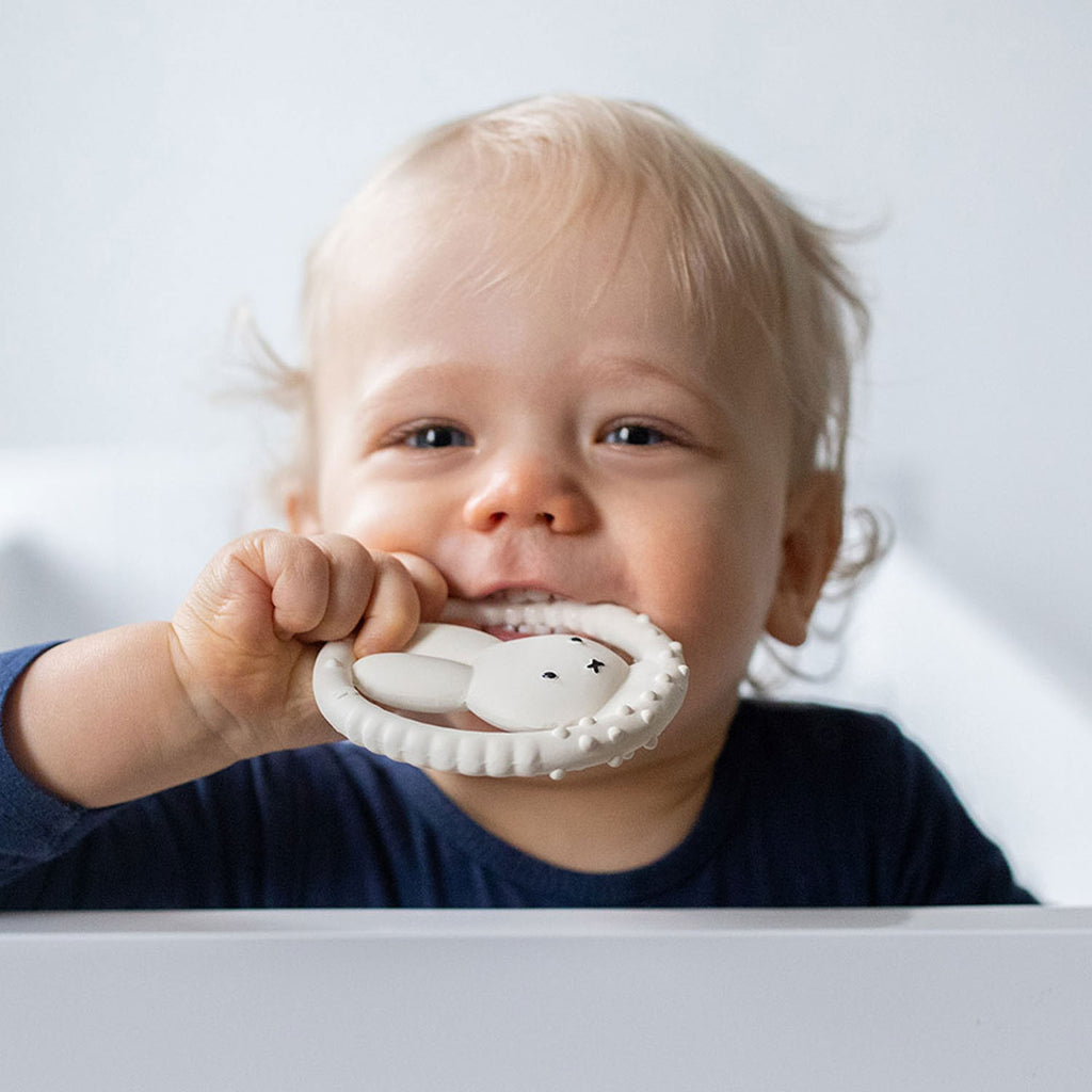 Dit nijntje bijtring is speciaal ontwikkeld voor de allerkleinsten. Het formaat van deze bijtring is gemaakt voor kleine handjes waardoor deze gemakkelijk vast te pakken is. Gemaakt van 100% natuurlijk rubber, is deze bijtring vrij van PVC, BPA, Nitrosaminen en Phthlaten, waardoor het een veilige keuze is voor baby's. Tijdens het doorkomen van de melktanden kan deze bijtring de pijn helpen te verzachten en de ontwikkeling van de zintuigen intuïtief te helpen. Het kan schoongemaakt worden met een licht vochtig doekje en wat zachte zeep. Belangrijk: Artikelen van rubber niet steriliseren of in de vaatwasser reinigen.