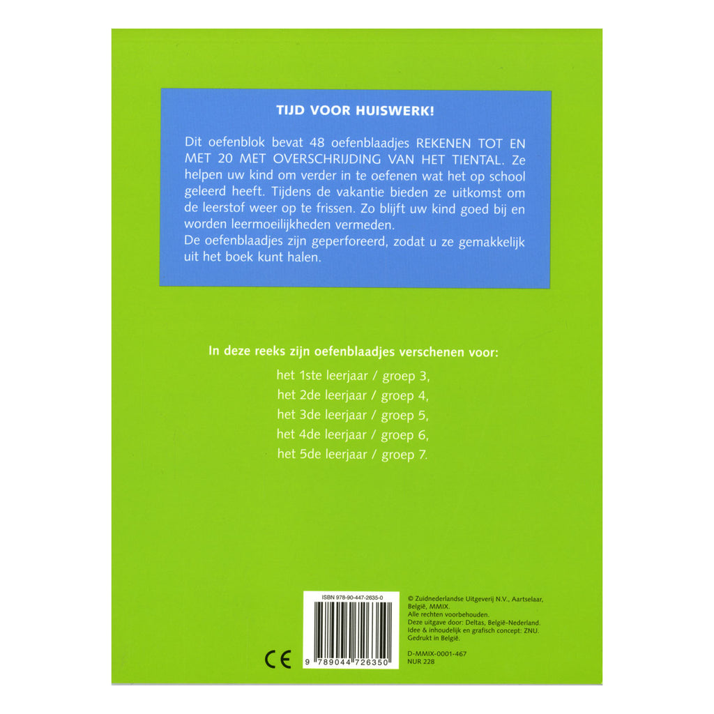 Dit oefenblok bevat 48 oefenblaadjes rekenen tot en met 20 met overschrijding van het tiental. Ze helpen uw kind om verder te oefenen wat het op school heeft geleerd. Tijdens de vakantie bieden ze uitkomst om de leerstof weer op te frissen. Zo blijft uw soort goed bij en leermoeilijkheden worden. De oefenblaadjes zijn geperforeerd, zodat u ze gemakkelijk uit het boek kunt halen.Inhoud: 96 pagina's. Paperback uitvoering.