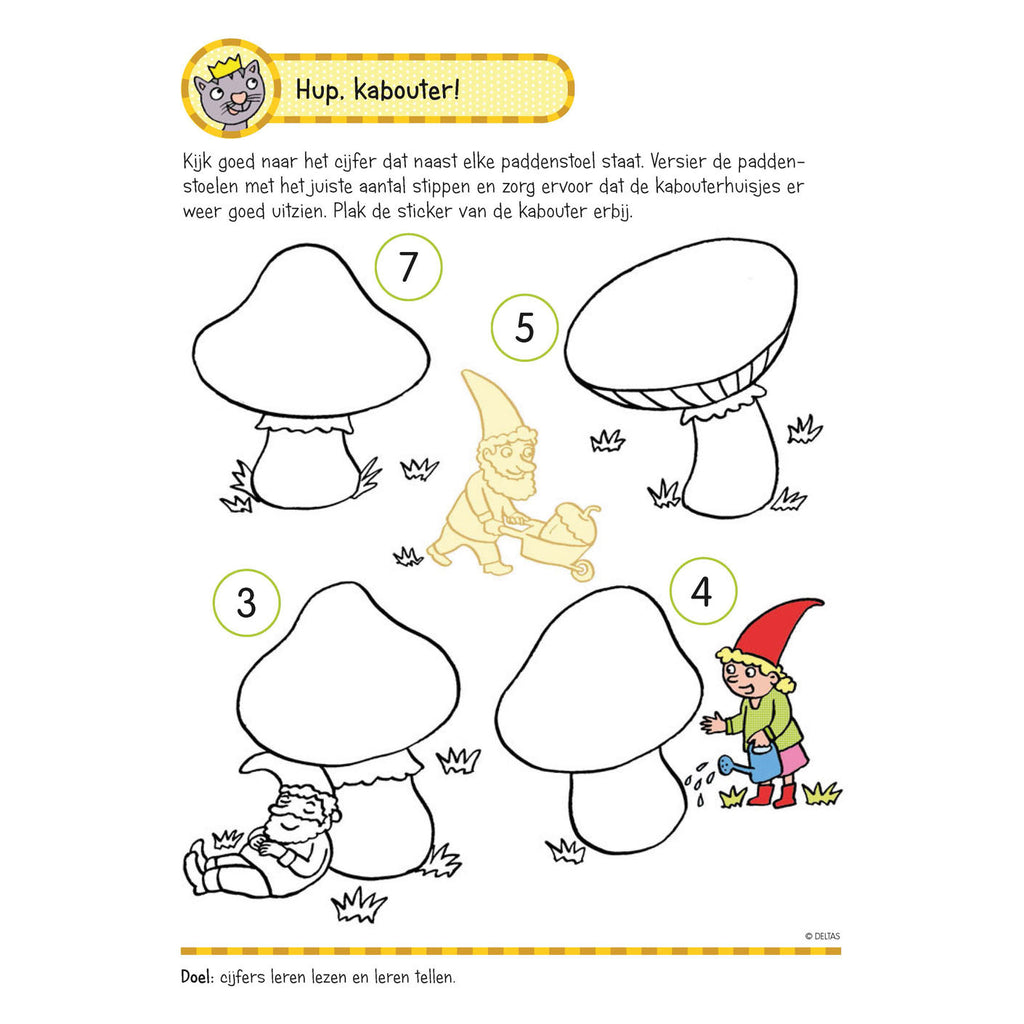 Zet de eerste stappen naar rekenen met dit Oefenboek Eerste Telspelletjes. Het opdrachtenboek is met naam geschikt voor kinderen uit groep 2 (5-6 jaar). Ze leren onder andere tellen tot en met 10, het getalbeeld herkennen en kennis maken met de begrippen 'grootste' en 'kleinste'. Midden in het Oefenboek Eerste Telspelletjes zitten kleurrijke stickers. gecombineerd kunnen de opdrachten worden beloond.