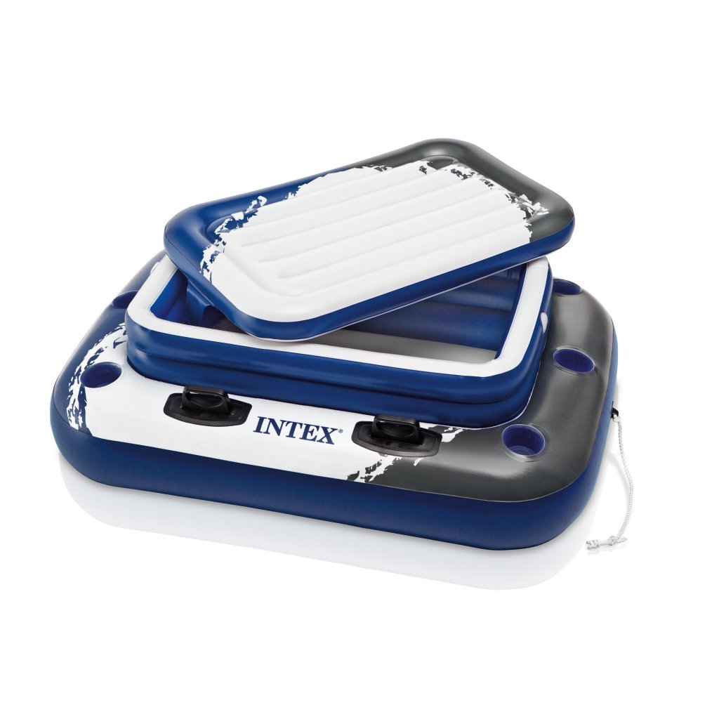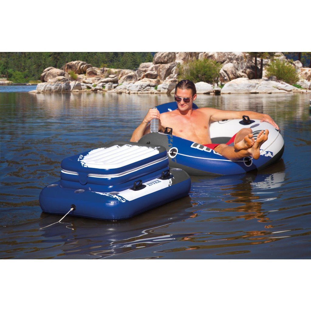 "Dankzij deze drijvende koelbox heb je altijd een verfrissend drankje bij de hand, ook tijdens het dobberen! Laat die cocktails maar komen! In deze handige koeler kan je wel 72 drankblikjes & ijs kwijt. Aan de rand van de koelbox zitten 6 bekerhouders. Het is dus ook een handige drankhouder! De koelbox kan eenvoudig aan de andere River Run artikelen vast gekoppeld worden dankzij de connector. Zo hoef je niet uit het water te komen om een verfrissing te halen. Ideaal voor een kajakken of suppen. De opblaasbare koelbox is gemaakt van duurzaam materiaal en heeft een stevige constructie. Geniet van koel drinken terwijl je ontspant op het water!" Productspecificaties: - Capaciteit: 72 drinkblikjes & ijs - 6 bekerhouders - Eenvoudig te koppelen aan andere River Run artikelen - Opblaasbaar en gemaakt van duurzaam materiaal - Stevige constructie