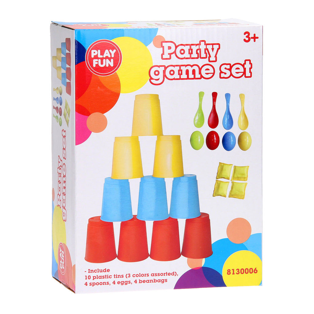 Beleef eindeloos speelplezier met deze set vol Oud-Hollandse spellen! Speel bijvoorbeeld een partijtje ballen gooien of lepel lopen. Inhoud: 4 kunststof lepels en eieren, 4 werpkussentjes (ook voor zakdoekje leggen) en 10 plastic blikjes.