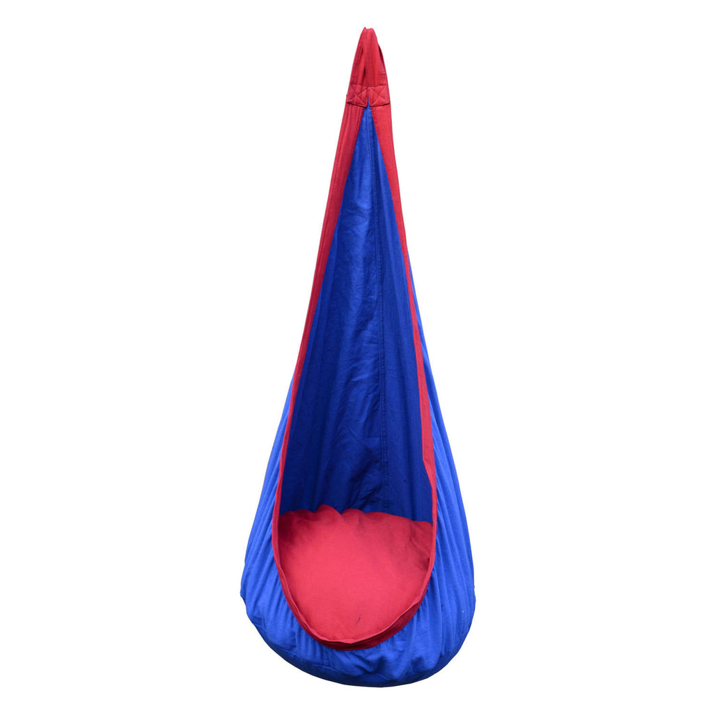 Buitenspelen Hangende zakschommel. Ga lekker chillen in deze hangzak voor kinderen! De hangzak is gemaakt van stevig katoen en te verkrijgen in de kleurencombinatie rood en blauw. Het zitvlak is opgevuld met polyester voor meer comfort. Afmetingen: 70x70x140 cm. Belastbaarheid: maximaal 100 kg. Wordt geleverd in full-colour doos met uitgebreide handleiding. Geschikt voor kinderen vanaf 3 jaar.