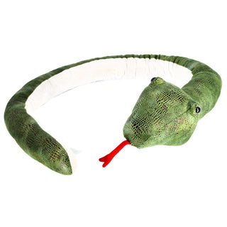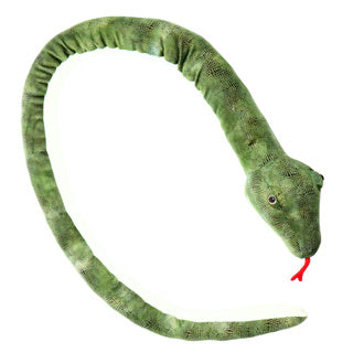 Slang Pluche Liggend 200 Cm. Grote pluche knuffel van een slang. De slang is groen van kleur, heerlijk zacht, en 2 meter lang. Geschikt voor kinderen vanaf 1 jaar.