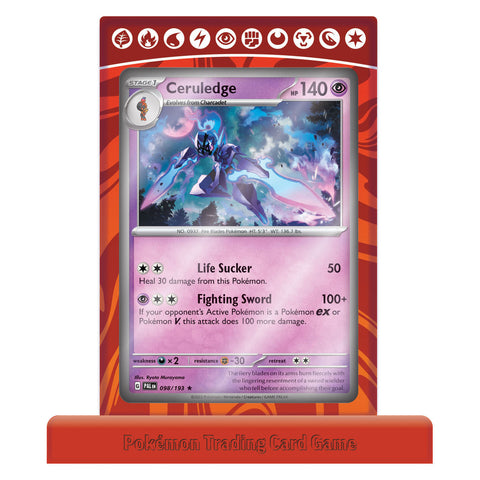 Armarouge verschijnt hier als speelbare geëtste foliepromokaart. Charcadet en Ceruledge voegen als foliepromokaarten nog meer brandstof toe aan het inferno.