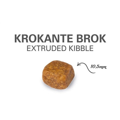 Samenstelling: Gedehydreerd gevogelte, maïs, dierlijk vet (gevogelte, rund), maïsgluten, rijst, eipoeder, plantaardige voedingsvezels, bietenpulp, cellulose, hydrolysaat van kippenlever, olie, hydrolysaat van gist (bron van Manno-Oligo-Sachariden), zalmolie (0,5%), L-carnitine, lecithine, Fructo-Oligo-Sacchariden (FOS), glucosamine & chondroïtine (750 mg/kg)