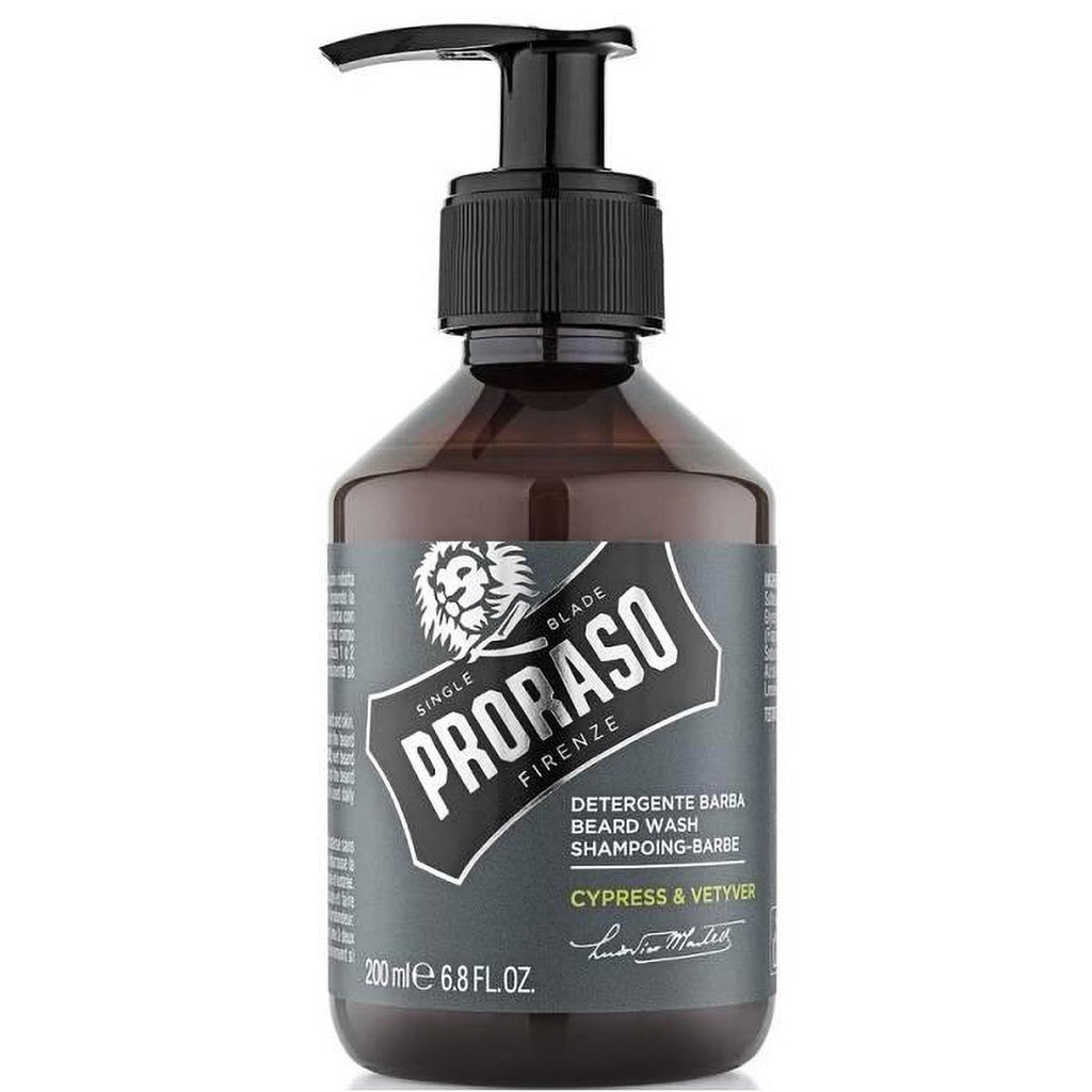 Proraso Beard Wash Cypress En Vetyver 200ml is een zachte, maar effectieve reiniger voor zowel de baard als de huid. Het is een licht schuimende formule die de huid en de baard verzacht en vuil en interessante geurige uit de baard veroorzaakt. Deze baardshampoo heeft de frisse geur van bergamot met een praktische cipres en een specifieke, harmonieuze kern van cederhout en vetyver. De geur culmineert in een amberkleurige explosie van amber en muskus hints, waardoor een energieke en dynamische opwinding ontstaat. Gebruik: Maak de baard nat met warm water en masseer de baardshampoo goed in. Spoel de shampoo vervolgens goed uit. Gebruik Proraso Beard Wash Wood & Spice minimaal twee keer per week of indien nodig dagelijks. Gebruik na het wassen van de baard een baardbalsem of baardolie. Plus- en minpunten Reinigt de baard en de huid Lichte schuimende formule Verzacht de baard Verwijderd vuil en vervelende geur