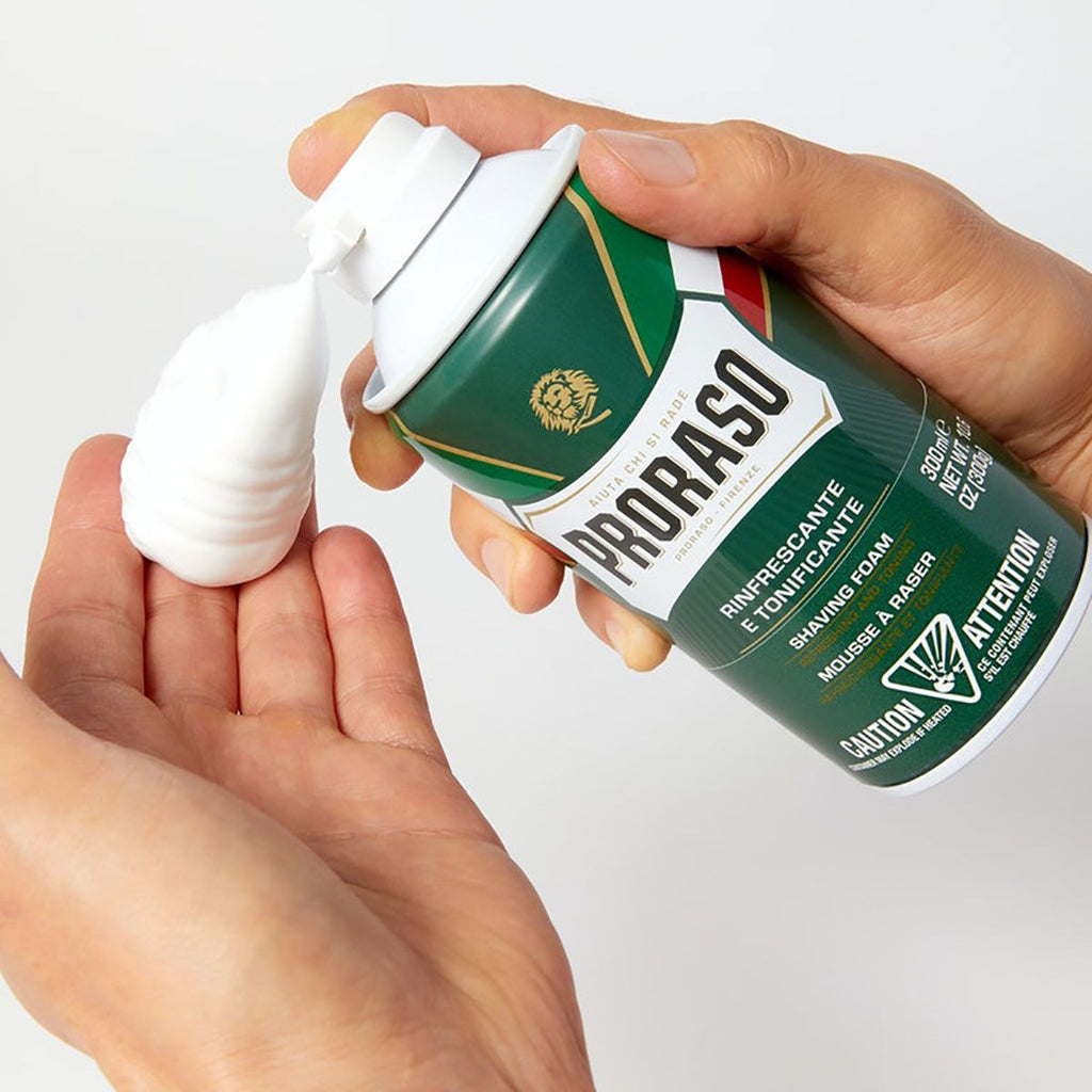 is een rijke en volle scheermousse voor een comfortabel scheren. De scheermousse maakt de baardharen zacht voor comfortabel en efficiënt scheren. De scheermousse bevat eucalyptusolie en menthol die ervoor zorgt dat de reinigende en verstevigende eigenschappen gecombineerd worden met een verfrissend en revitaliserend effect. Gebruik: afwisselend voor gebruik. Maak het gezicht vochtig met warm water, verdeel het schuim over het gezicht en scheer zoals gewoonlijk. Plus- en minpunten Rijke en volle scheermousse Werkt verfrissend