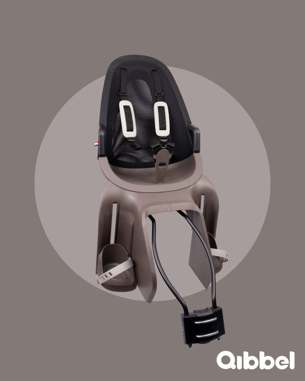 Qibbel Air: het lichtste fietsstoeltje achterop Even naar de bakker, zwemles of samen een mooie fietstocht maken. Met het achterzitje van Qibbel neem je, je kind overal mee naartoe. Een fietsstoeltje achter op je fiets is perfect voor kinderen vanaf 9 maanden tot een leeftijd van 6 jaar (of 22 kilo). Bij Qibbel hechten we veel waarde aan fietsplezier. Een licht fietsstoeltje achter op je fiets hoort daarbij. Daarom hebben wij het lichtste fietsstoeltje van Nederland ontwikkeld. Met een rugleuning van mesh, een super licht, slijtvast en ventilerend materiaal, zit je kindje comfortabel én weegt het fietsstoeltje achterop slechts 2,5 kilo. Veilig en sterk Veiligheid staat bij ons altijd op nummer één. Daarom voldoen onze Qibbel Air fietszitjes aan strenge Europese veiligheidsnormen en heeft het fietsstoeltje achterop zelfs een extra TÜV-certificering behaald in Duitsland. Onze fietszitjes zijn dus uitvoerig getest en veilig bevonden waardoor je zorgeloos met je kindje op pad kunt. Supersnelle montage Zie je op tegen de montage? Niet nodig. Wij nemen je zorgen graag uit handen, daarom zijn onze fietsstoeltjes makkelijk achterop te monteren. Je hebt niet eens gereedschap nodig! Met de draaiknop bevestig je het stoeltje simpel aan de drager en met de ontgrendeling aan de achterzijde, op veilige afstand van je kind, haal je het zitje er zo af. Met een beweeglijk kind en een tas vol spullen wil je, je fietsstoeltje achterop snel kunnen instellen. Dat snappen we. Daarom zijn de gordels, voetriempjes en voetsteunen van de Qibbel Air heel makkelijk aan te passen. De gordel past zich aan de schouderhoogte van je kindje aan. Belangrijkste kenmerken Lichtgewicht ontwerp: slechts 2,5 kg - het lichtste fietsstoeltje van Nederland Geschikt voor kinderen van 9 maanden tot 6 jaar (max. 22 kg) Comfortabele rugleuning van mesh: ademend, slijtvast en ventilerend materiaal Veilig en gecertificeerd: voldoet aan Europese veiligheidsnormen + extra TÜV-certificering (Duitsland) Eenvoudige montage zonder gereedschap: snel bevestigen met draaiknop Makkelijk afneembaar met ontgrendeling aan de achterkant (buiten bereik van het kind) Verstelbare onderdelen: gordels, voetsteunen en voetriempjes zijn eenvoudig aan te passen aan je kind