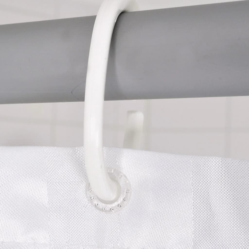 Dit douchegordijn is gemaakt van hoogwaardig 100% polyester, dat waterafstotend en uiterst praktisch in gebruik is. Een gewichtsband wordt in de onderste boord genaaid, waardoor het douchegordijn mooi valt en zo kwetsbaar aan een veilige douche-ervaring. Het gordijn is in de wasmachine wasbaar op maximaal 60 °C en kan op lage temperaturen gestreken worden. De installatie is heel eenvoudig: het douchegordijn is voorzien van kunststof oogjes en kan snel en eenvoudigweg worden uitgesloten met douchegordijnringen (niet inbegrepen).
