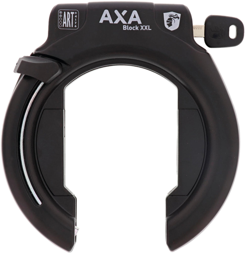 De AXA Block XXL is een hoogwaardig frameslot dat optimale beveiliging biedt voor uw fiets. Met de mogelijkheid om de ULC plug-in ketting in het slot te steken en uw fiets aan een groot object te verbinden, kunt u met een veilig hart uw fiets achterlaten. Het ringslot is voorzien van een anti-boorcilinder en een harde stalen beugel, wat zorgt voor maximale beveiliging. Daarnaast biedt de ergonomische bedieningsknop en de online sleutelservice maximaal comfort. Het AXA Block XXL slot heeft een extra brede opening, waardoor het ook geschikt is voor fietsen met brede spatborden of ballonbanden. Vertrouw op de AXA Block XXL voor de beste beveiliging van uw fiets. Productspecificaties - Beveiligingsniveau: 12 - Goedgekeurd voor fietsverzekering in DK/SE - Maximale beveiliging door extra ULC plug in ketting mogelijkheid - Leverbaar in de kleur zwart - Online sleutelservice - Sleutel uitneembaar als het slot open is - Goedkeuring slot: Varefakta (DK) - Sleutelservice: Ja - Aantal sleutels: 2 - Vastd tegen boren: Ja - Breedte opening: 60 mm - Kleur primaire: Zwart - Productlengte: 160 mm - Productbreedte: 155 mm - Producthoogte: 30 mm - Productgewicht: 670 gram - Verpakt product gewicht: 690 gram - Afmetingen verpakt product: 220x160x30 mm - Inclusief bevestigingsmiddelen: Nee