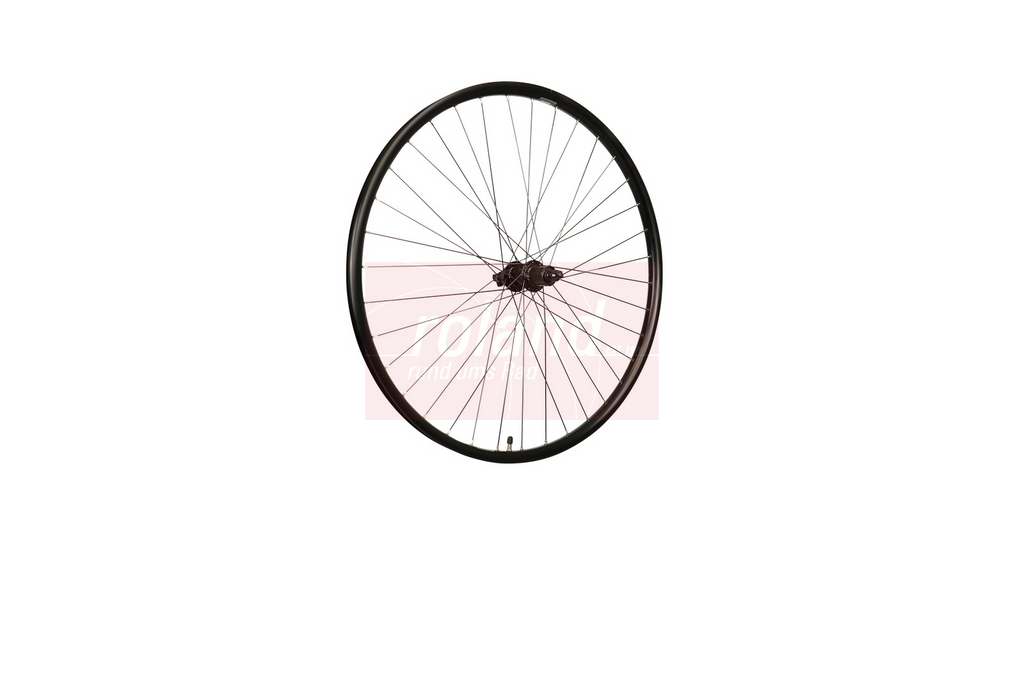 Achterwiel 28" met 36 spaakgaten, geschikt voor schijfremmen. Voorzien van Shimano Alivio naaf. Kleur: zwart. Afkomstig uit het Roland Wheels assortiment, type: AW 28 26-622 RYDE RIVAL26 ALU ZW DISC SE 36L
