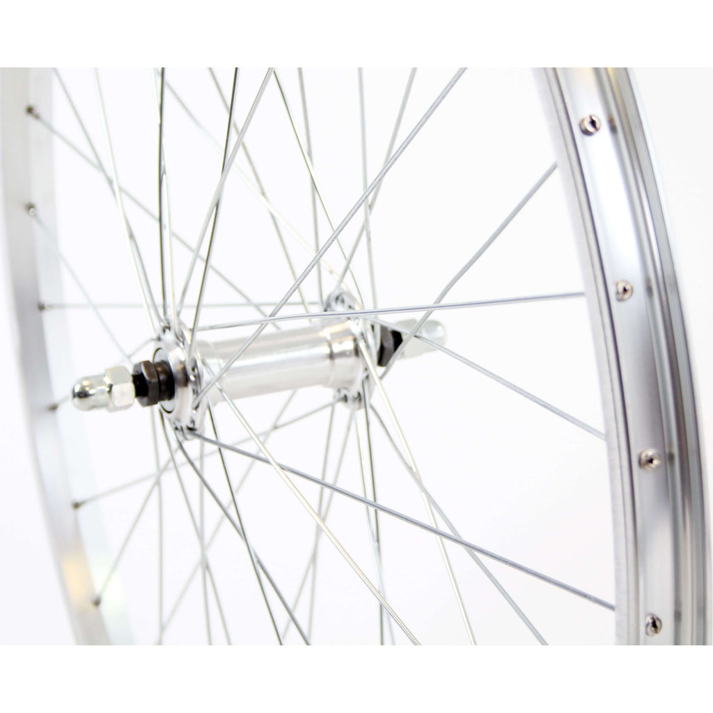 Voorwiel 26x1.75 zilver enkelwandig velgrem Voorwiel 26x 1.75 vast als alu 24mm velg