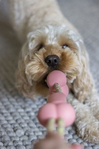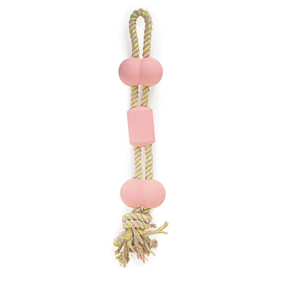 De Rosewood Tough Twist Rubber Met Touw BBQ Smaak 35X7 cm is een stevig hondenspeeltje van gedraaid touw met rubber dat smaakt naar barbecue. Dit hondenspeeltje van Rosewood heeft een heerlijk smaakje en is fantastisch om mee te spelen! Aan dit stevig gedraaid touw zitten drie rubberen blokjes. Deze blokjes hebben een overheerlijke barbecuesmaak! De pastelkleur heeft een mooie look. Dit speelgoedje is ideaal voor een leuk spelletje touwtrekken!