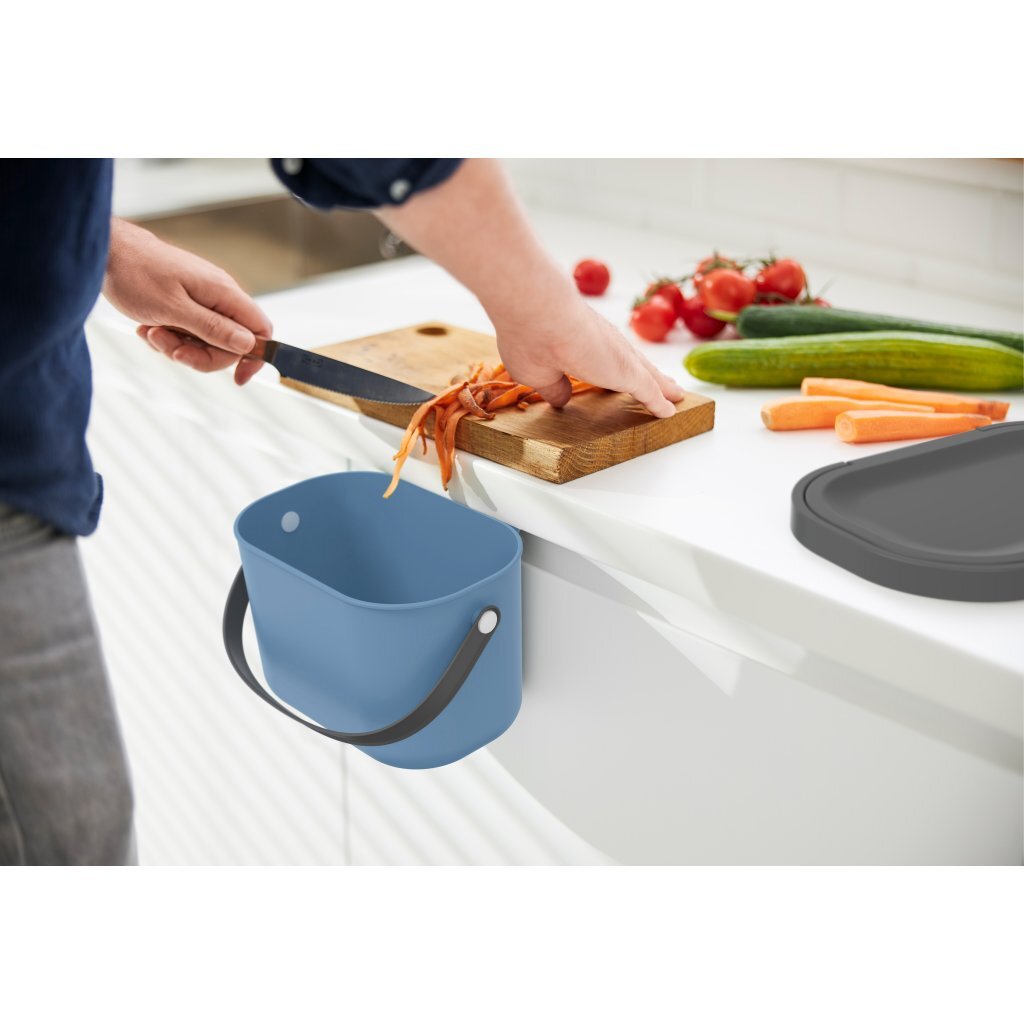 De emmer is de perfecte keukenhulp om organisch afval, maar ook bijvoorbeeld koffiecapsules of afwastabletten, handig en eenvoudig op te vangen.Dankzij het ideale, compact formaat kan hij zowel op het werk worden geplaatst als met het geïntegreerde ophangsysteem aan deuren en laden in de keuken worden gehangen.Dankzij de grote opening staat niets een eenvoudige en schone afvoer in de weg.Bovendien valt de deksel niet altijd dicht, maar blijft hij zonder problemen in geopende stand staan ??of kan indien nodig volledig worden verborgen.Zodra de emmer vol is, maak de comfortabele handvatten hem gemakkelijk en eenvoudig te dragen.Onze stijlvolle en stijlvolle emmer is verkrijgbaar in 6 verschillende kleuren, zodat er voor ieders smaak iets te vinden is.Overtuig profiteer ervan dat een GFT-bak niet alleen een keukenhulpje kan zijn, maar ook een blikvanger in uw keuken. Inhoud: 3,2 liter. Kleur: blauw.